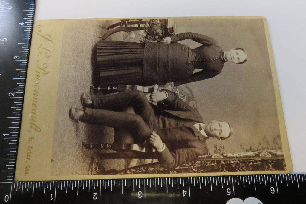 Antique Cabinet Card Woman By Photo Album and Seated Man J.L. Pinsonneault