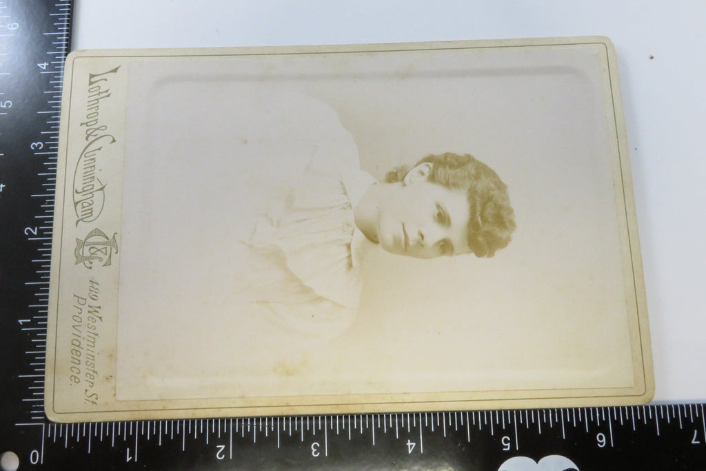 Antique Cabinet Card Woman in White Lothrop & Cunningham Providence RI