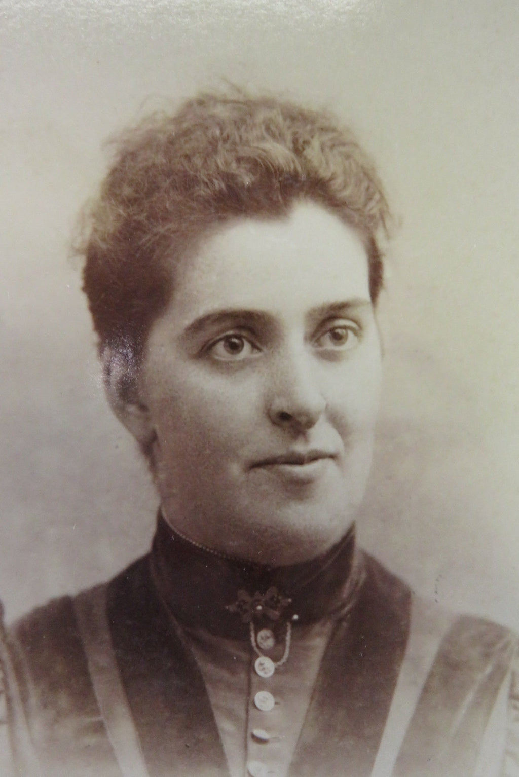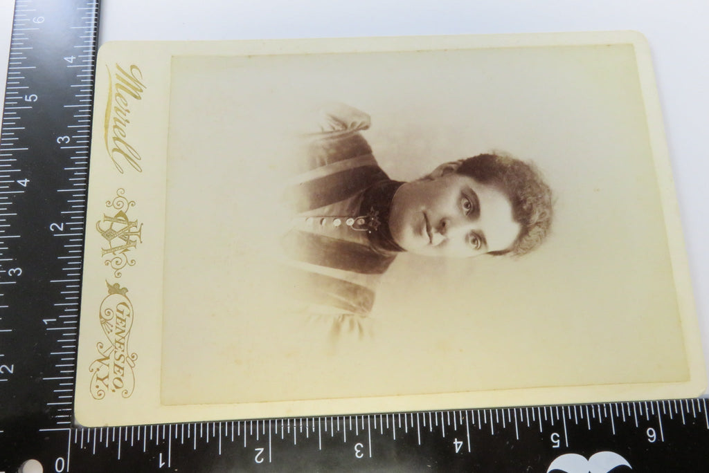 Antique Cabinet Card Woman Puffy Shoulders Tracery Pin Merrell Geneseo NY