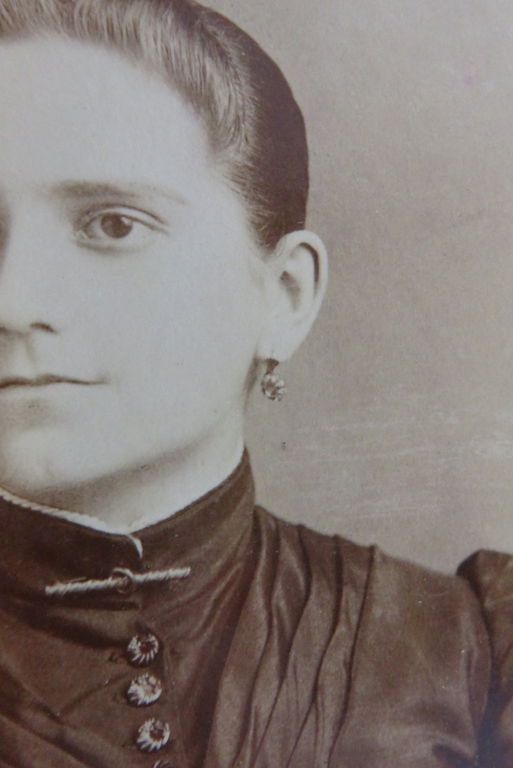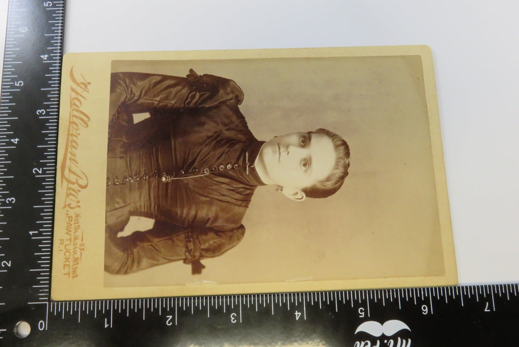 Antique Cabinet Card Woman Wearing Collar Chain Paste Earrings Halloran Bros