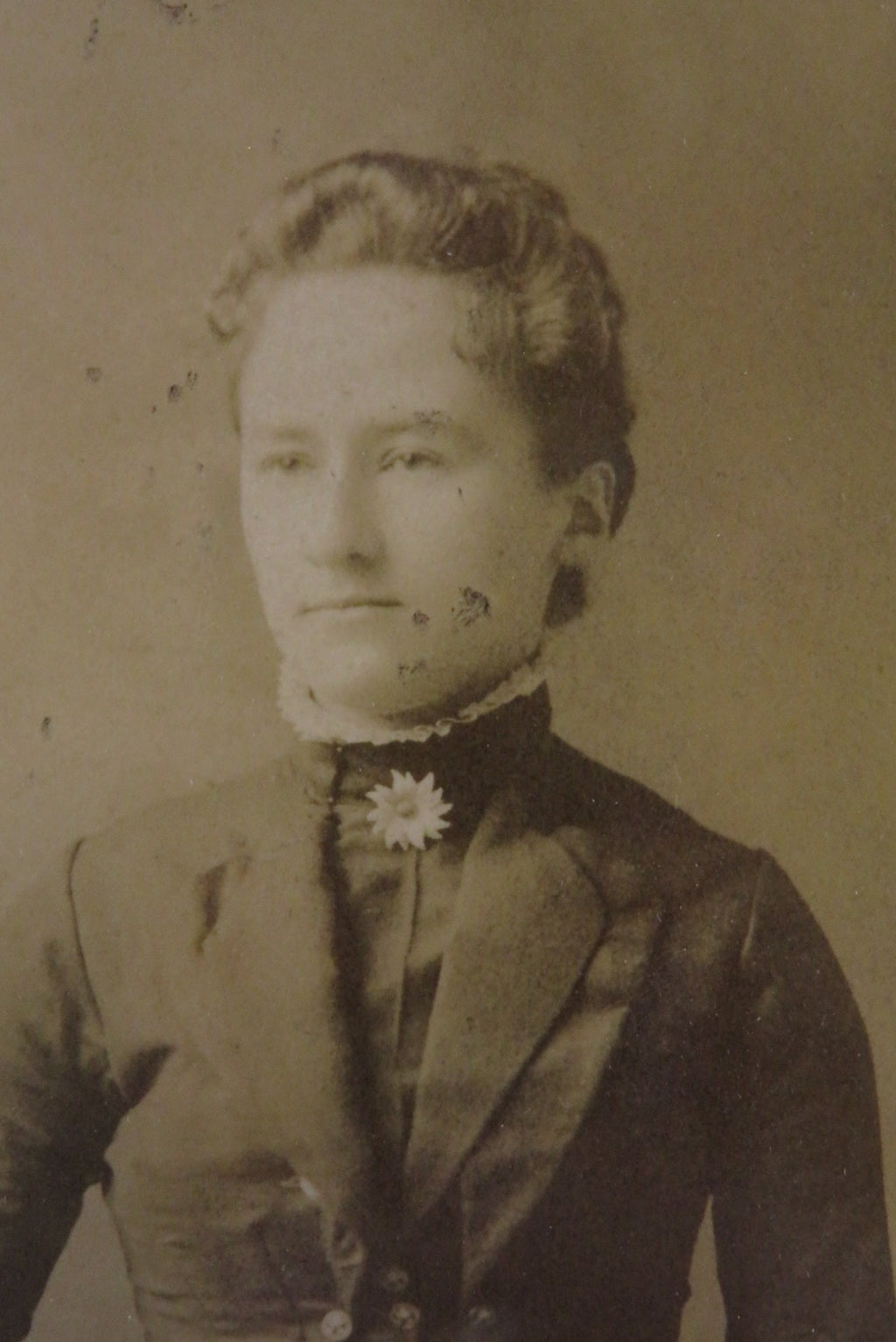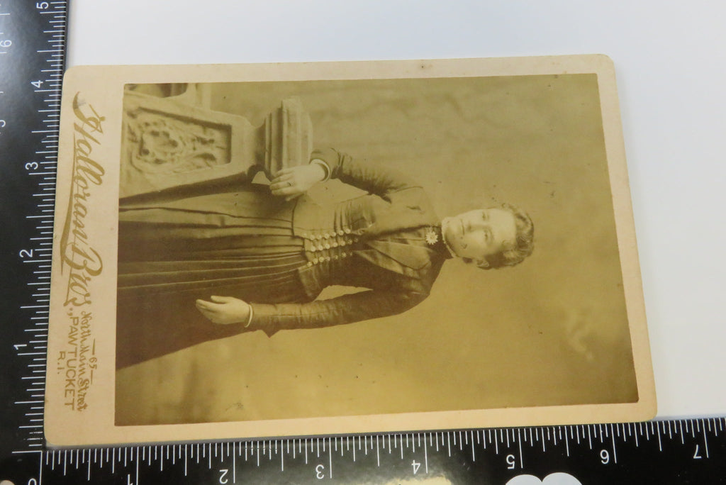 Antique Cabinet Card Woman Wearing Large Flower Pin Halloran Bros Pawtucket
