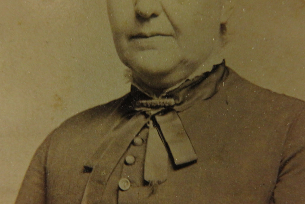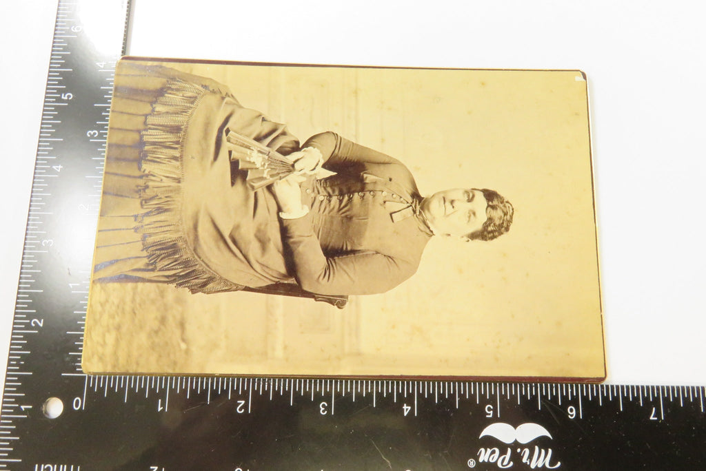 Antique Cabinet Card Woman with Fan Collar Pin Extra Large Image GH Wood C1890