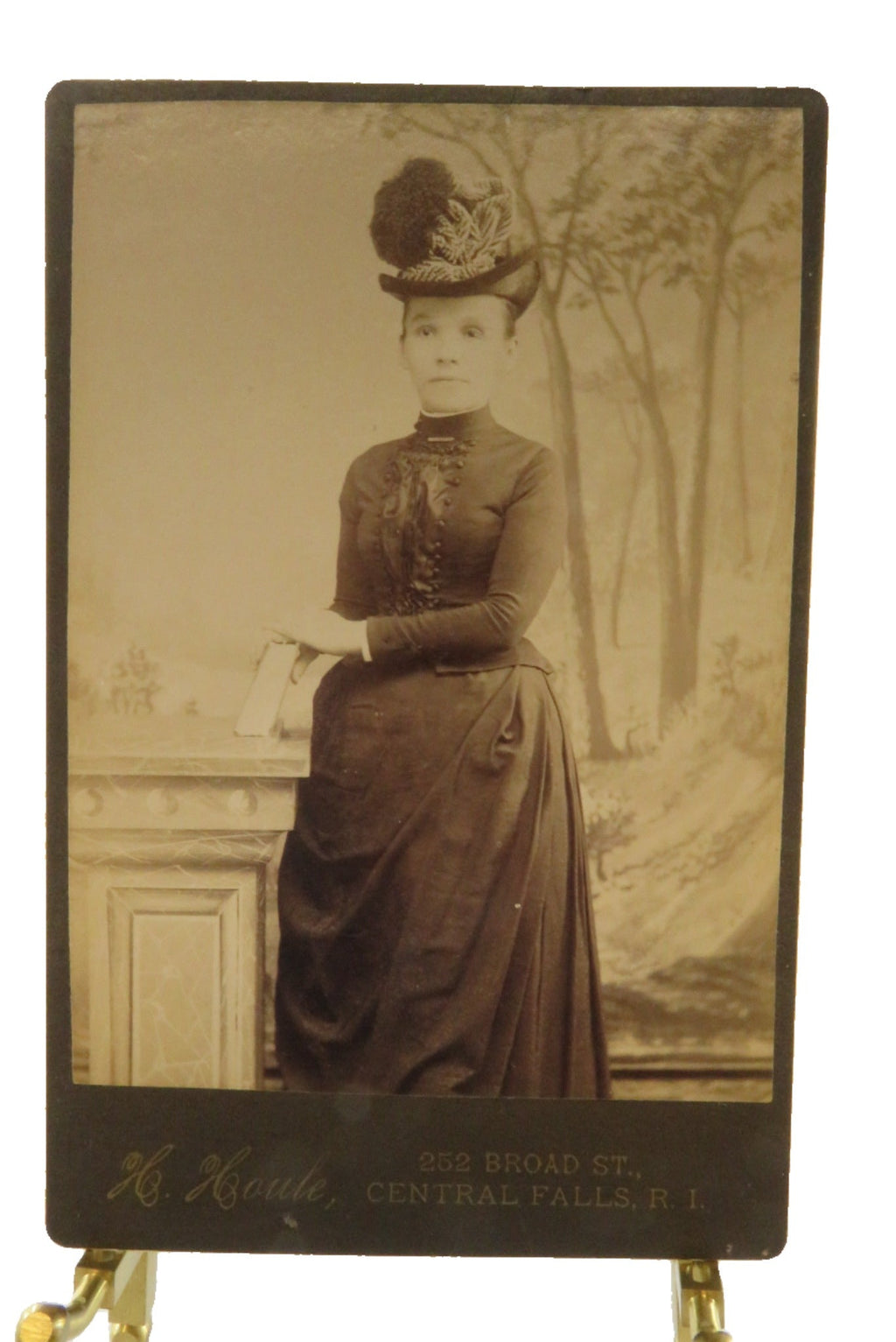 Antique Cabinet Card Young Woman Big Hat H. Houle Central Falls Rhode Island