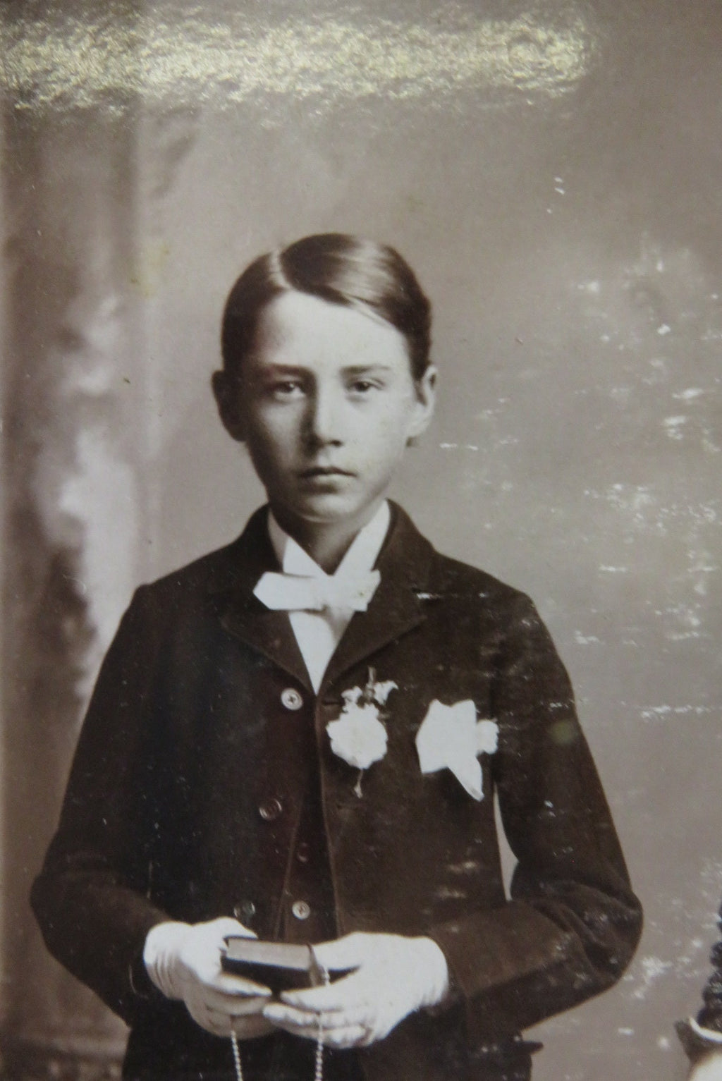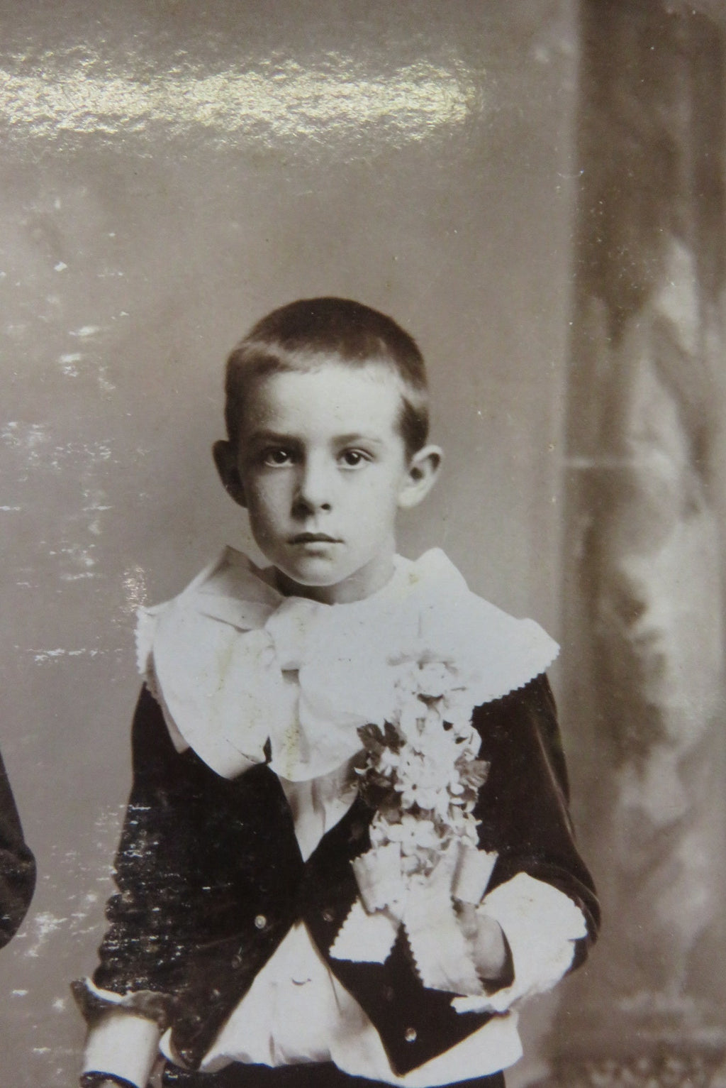 Antique Cabinet Card 2 Boys Flowers and Bible Bateham Norwalk c1900
