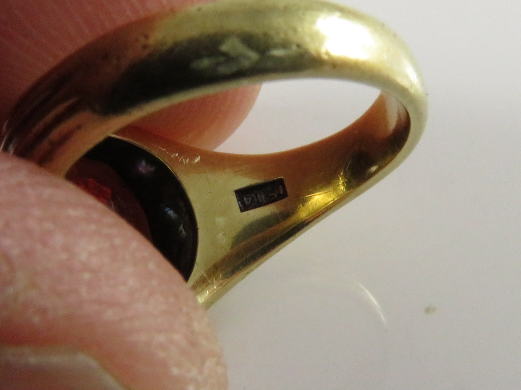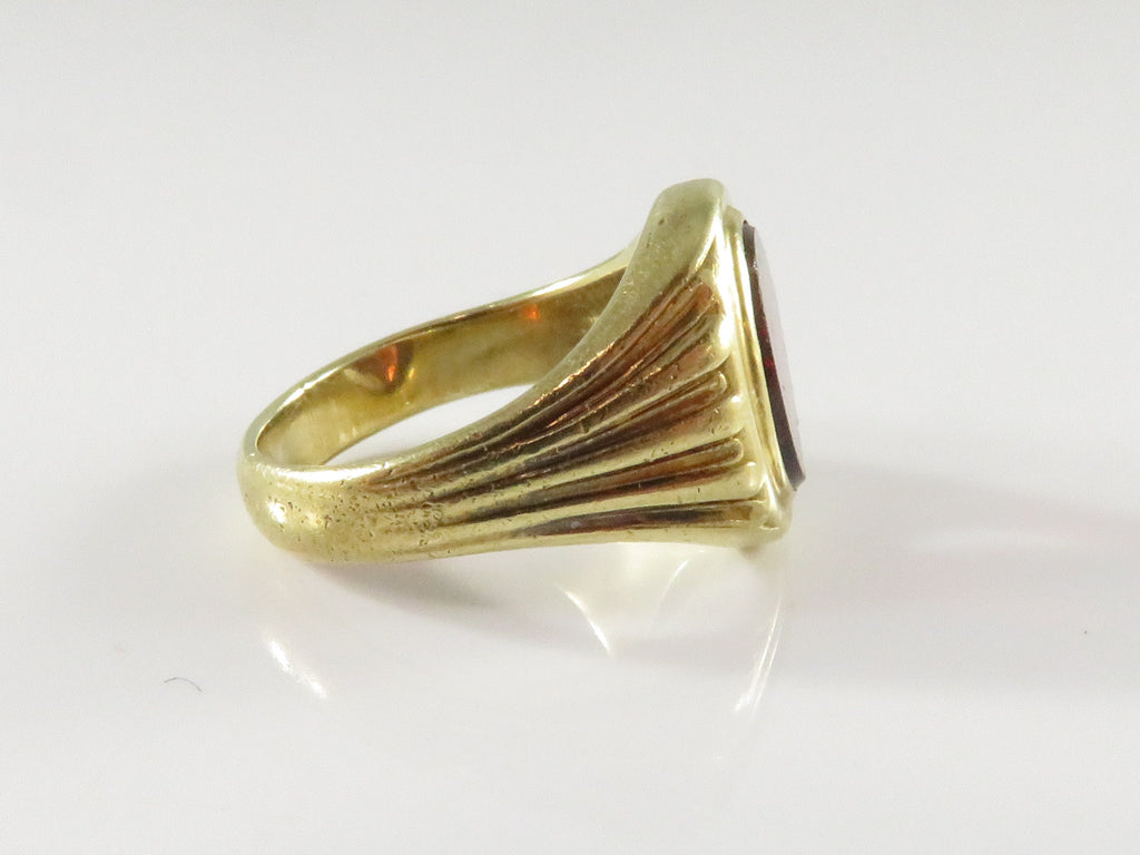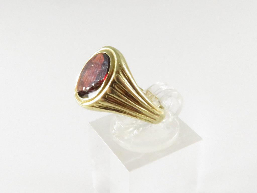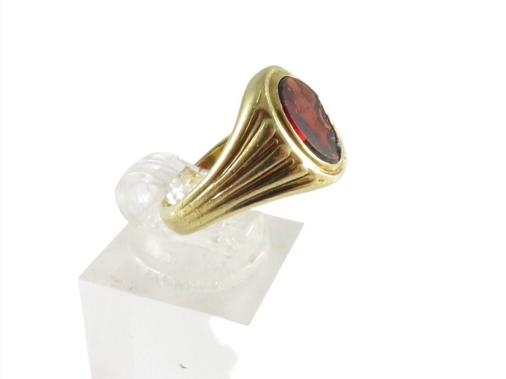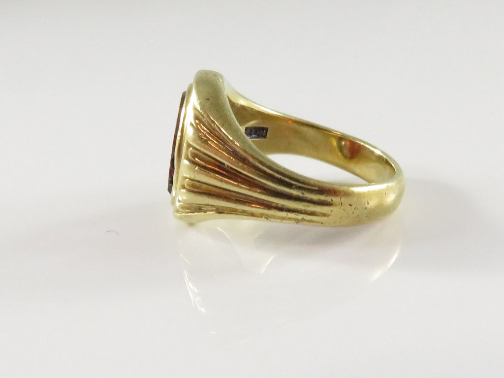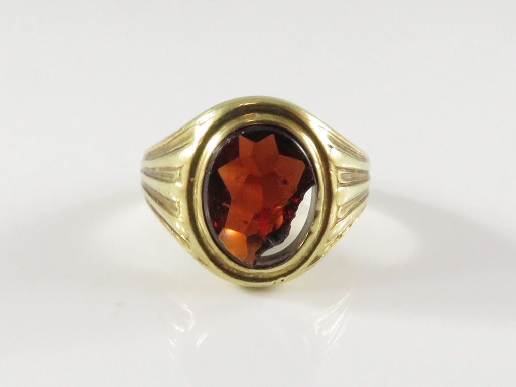 14K Gold Edwardian-Style Bezel Set Ring, Mixed-Cut Orange Stone (Restoration)