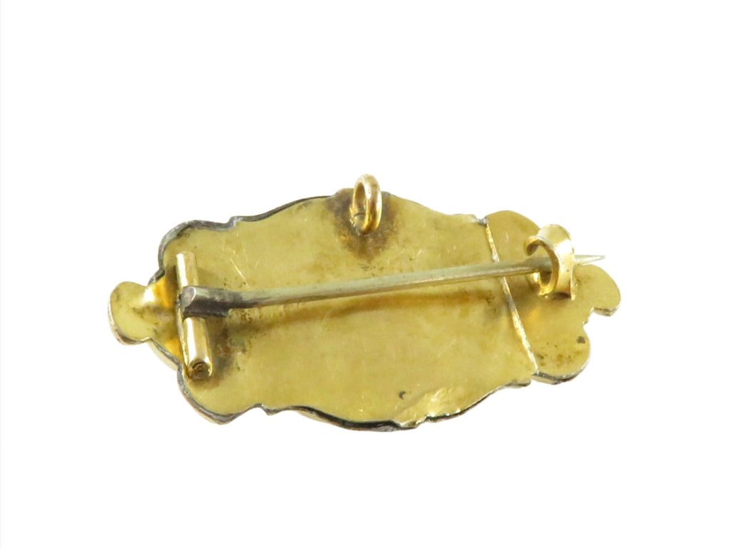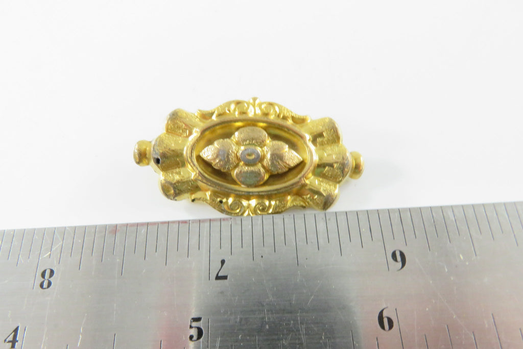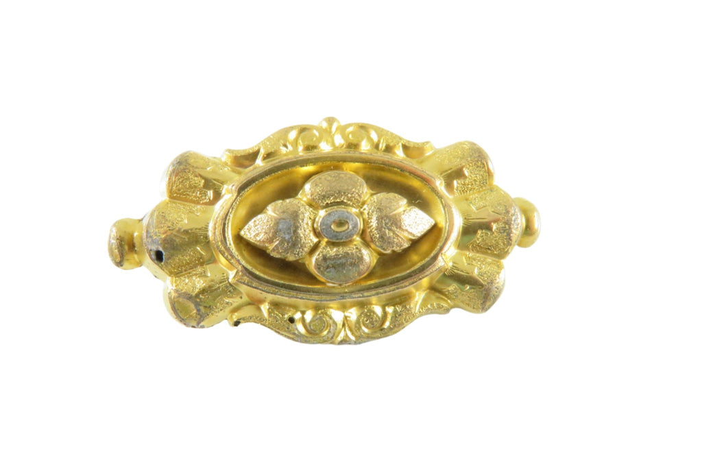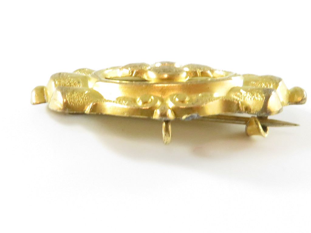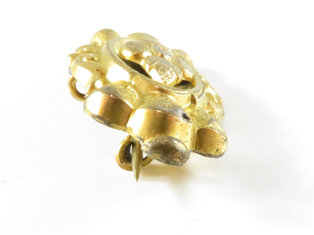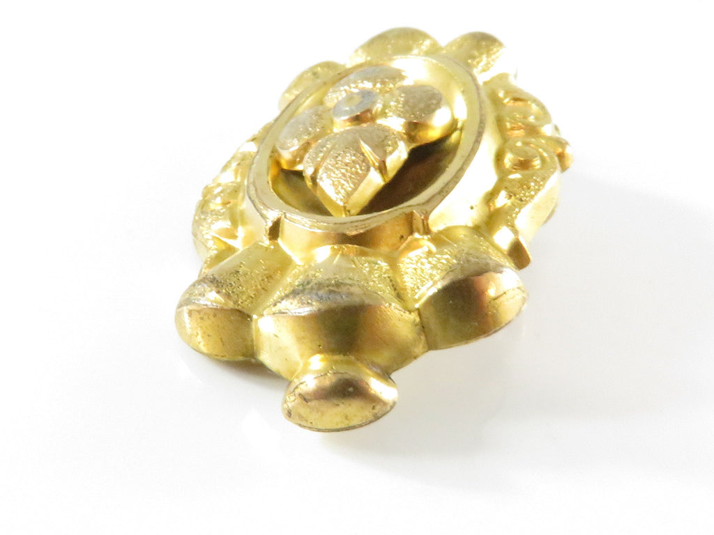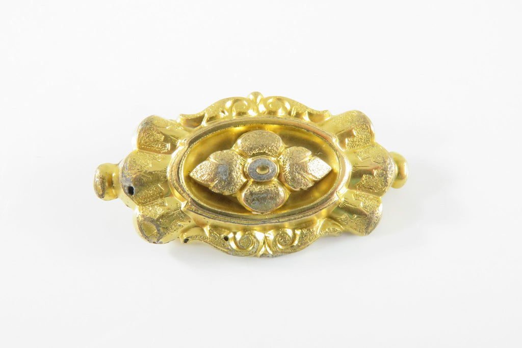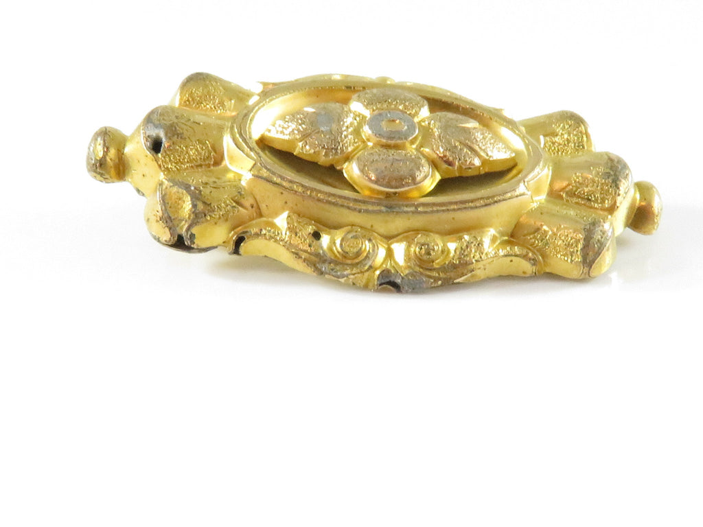 Antique Gilded Metal Brooch Pendant Repousse Metal T-Pin Victorian