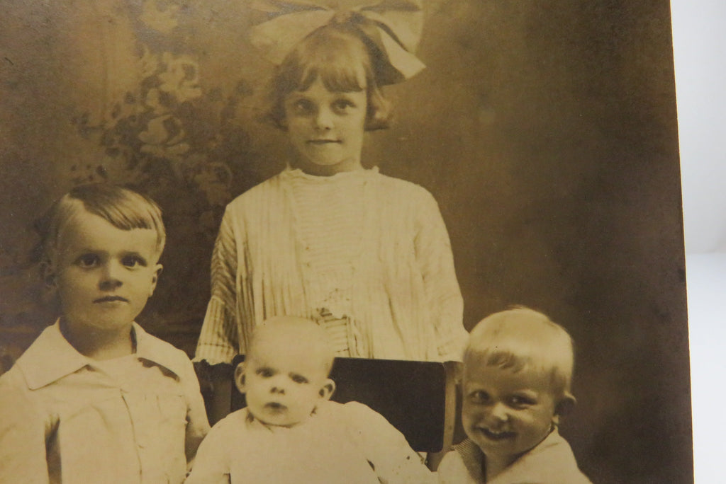 Antique Photograph A Gaggle of Children..2 Boys, Girl and Baby c1915