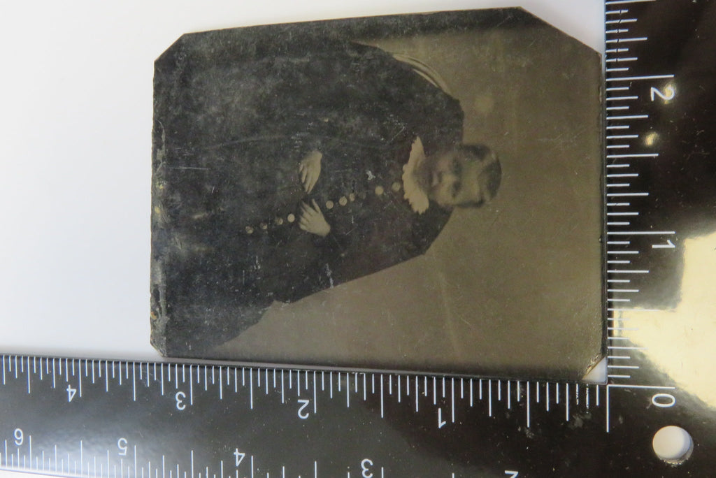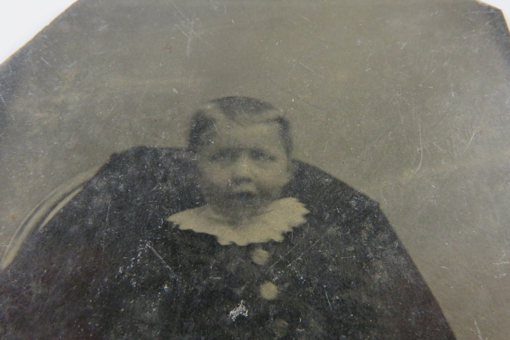Antique Tintype Photo of Little Boy in High Collar Big Button Outfit