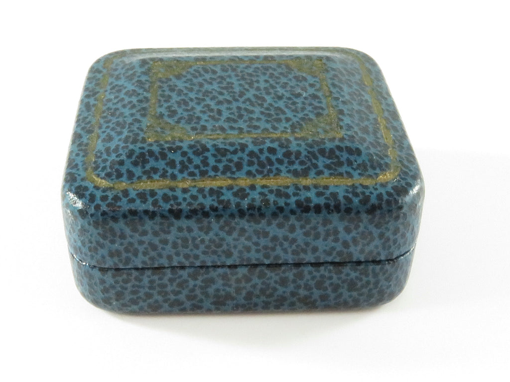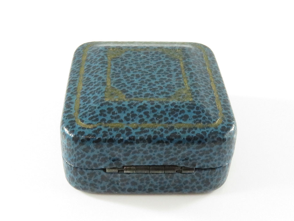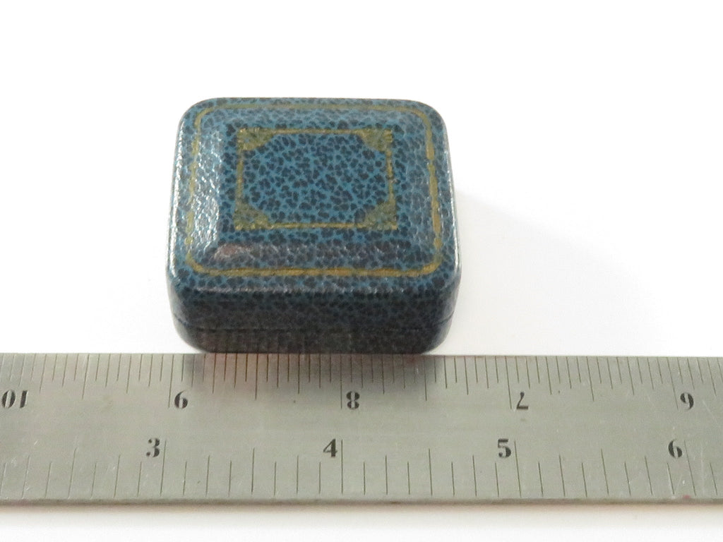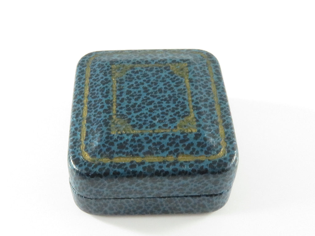c1920 Earring, Cufflink, Ring Box Small Blue & Gold Leather Trimmed Gift Box