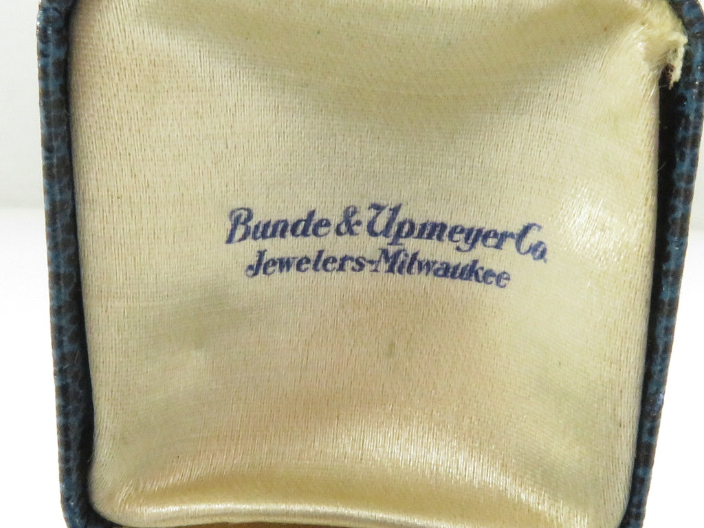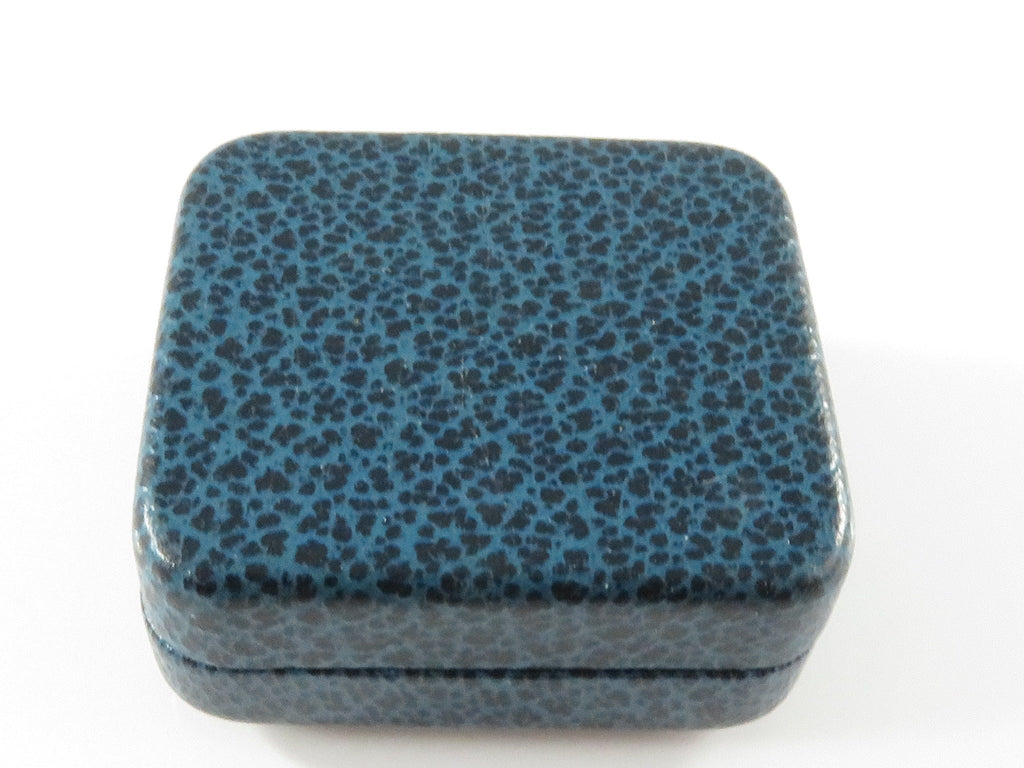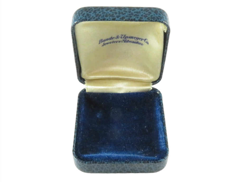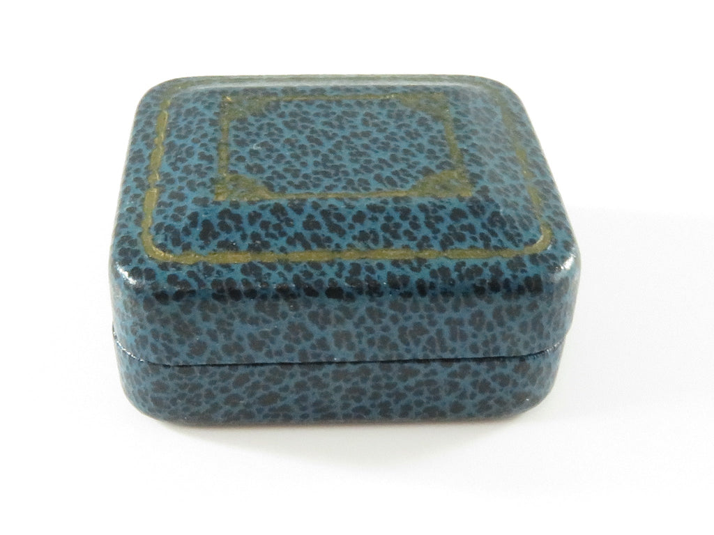 c1920 Earring, Cufflink, Ring Box Small Blue & Gold Leather Trimmed Gift Box