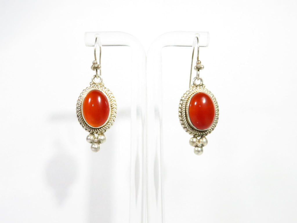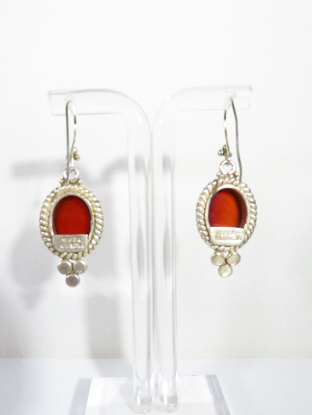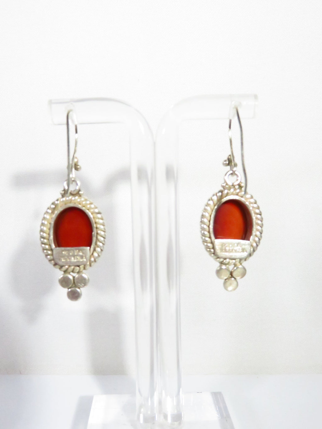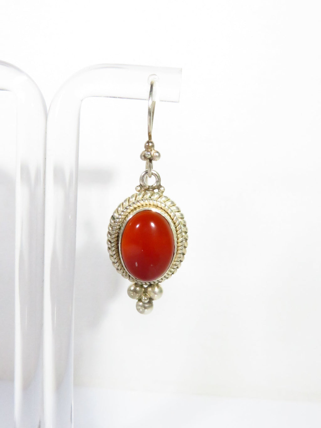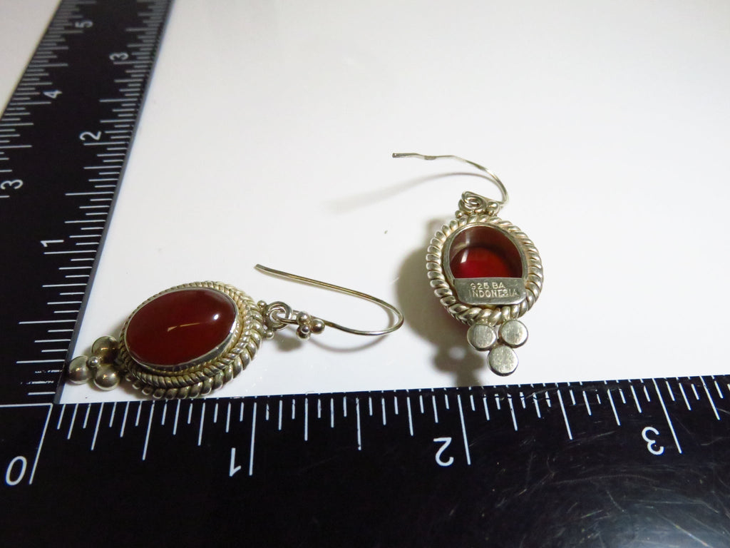 BA Suarti Sterling Indonesia Translucent Carnelian French Wire Dangling Earrings