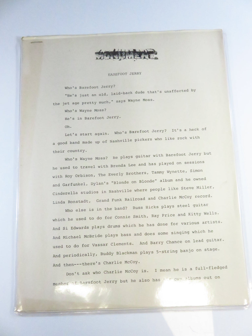 Barefoot Jerry Monument Records Photo with 3 Page Bio Sheet Wayne Moss