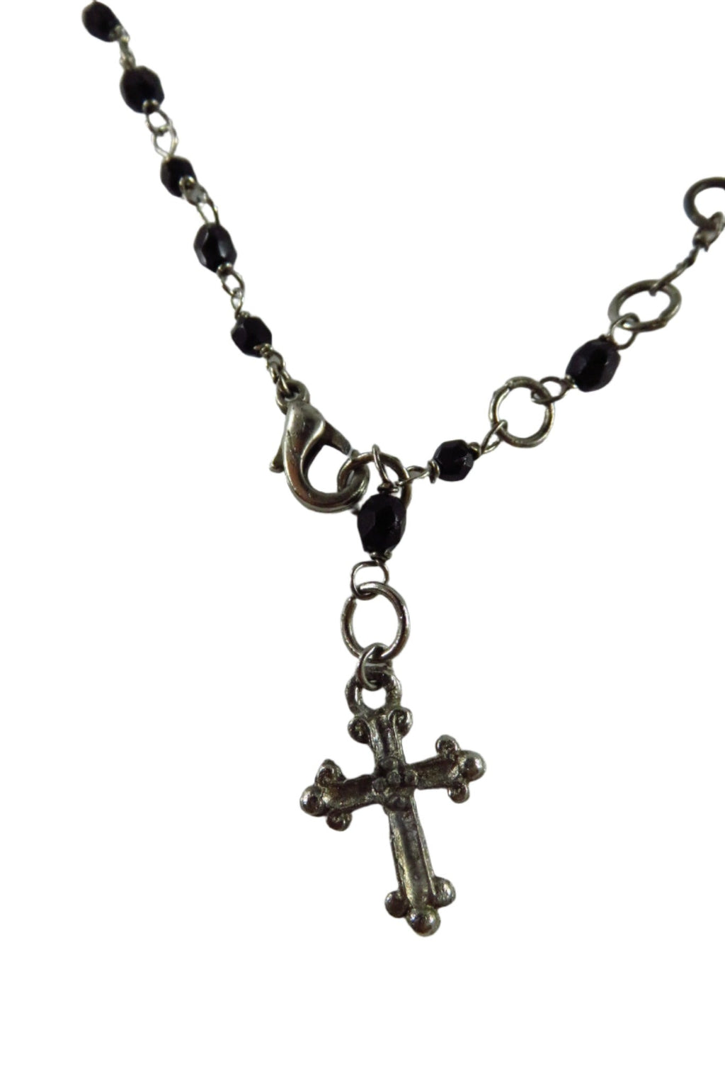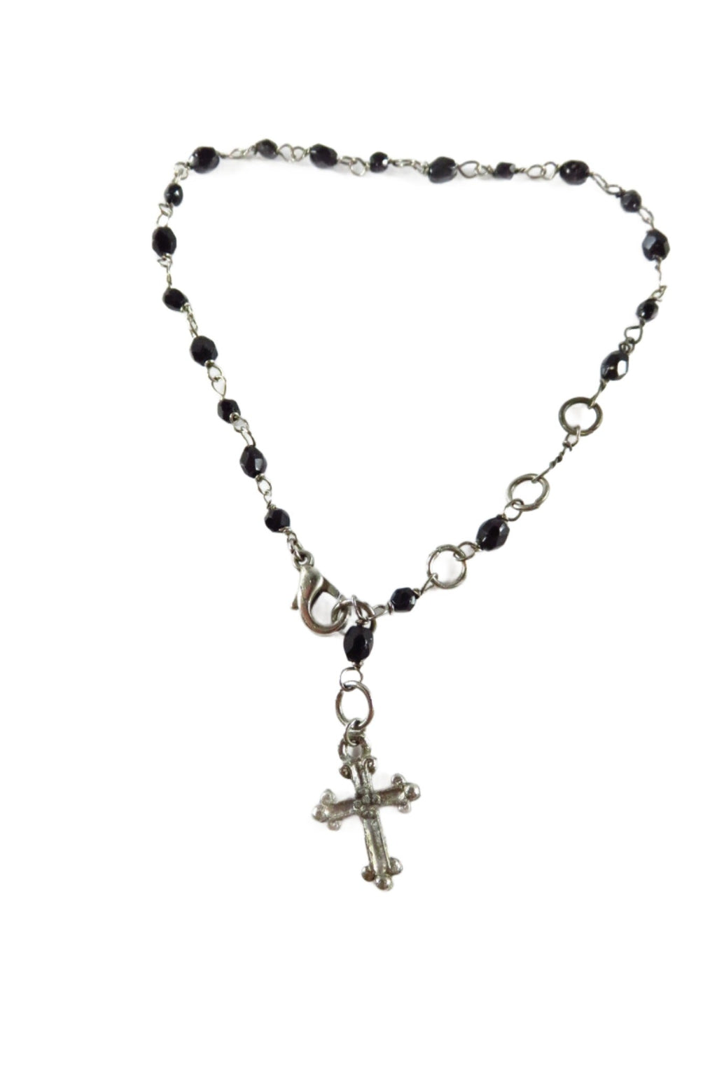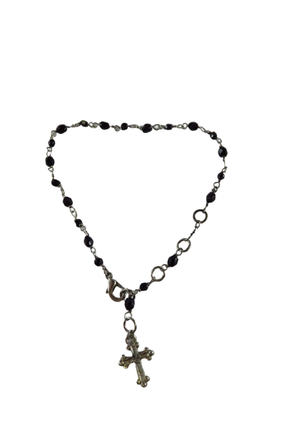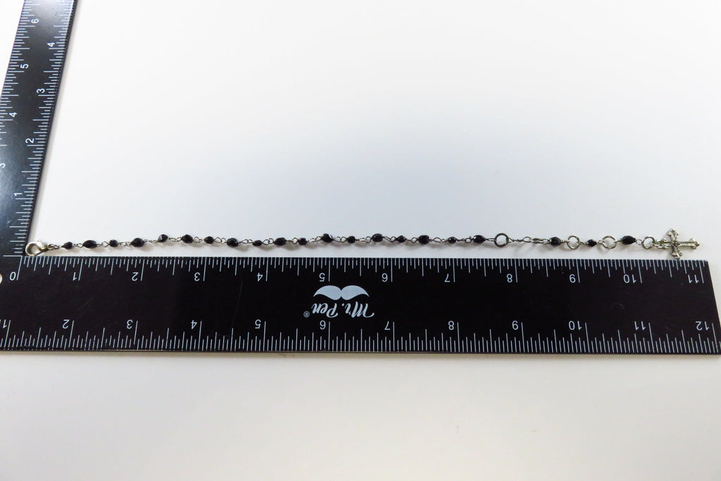Beaded Dangling Cross Bracelet Black Faceted Glass Accents 11" TL