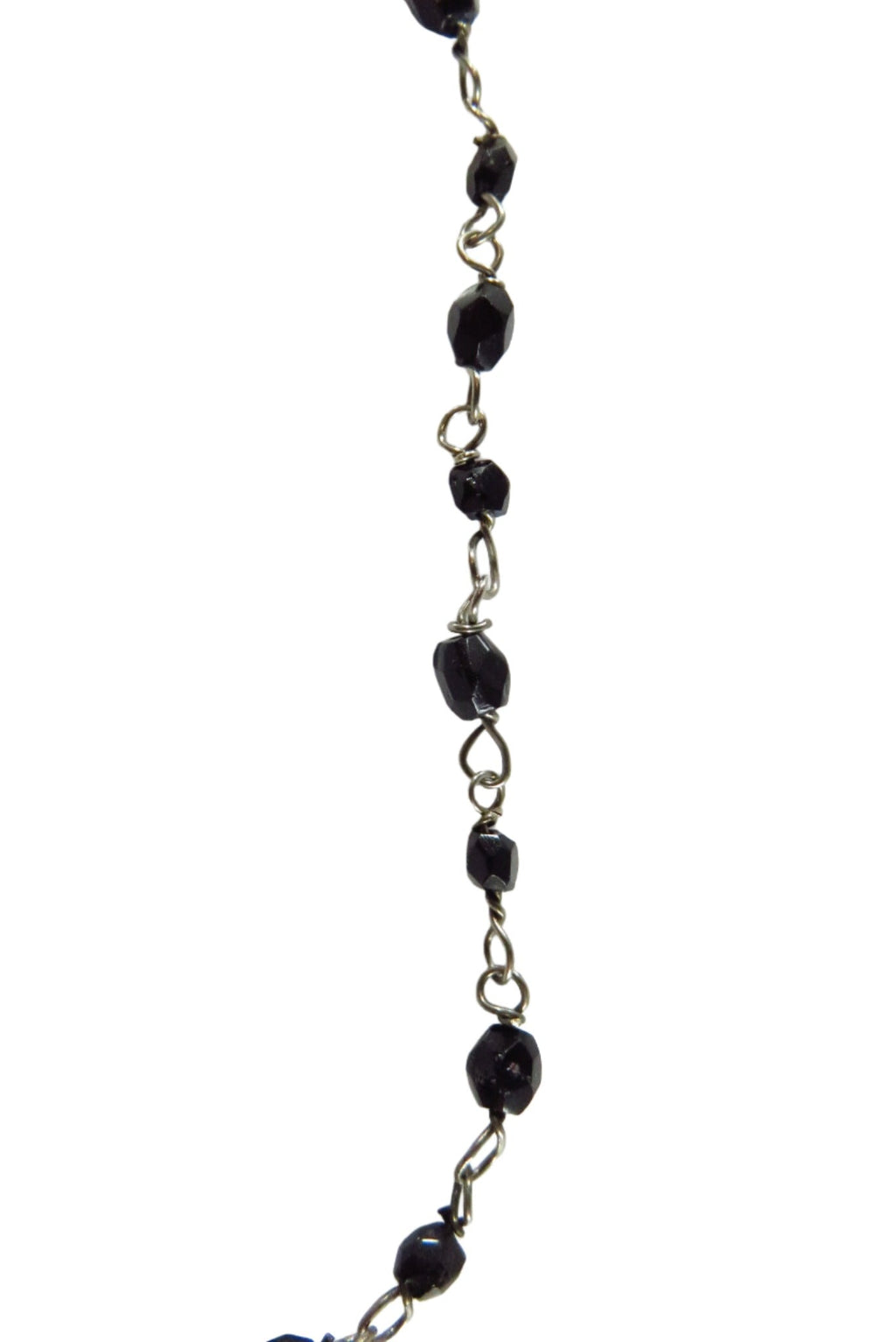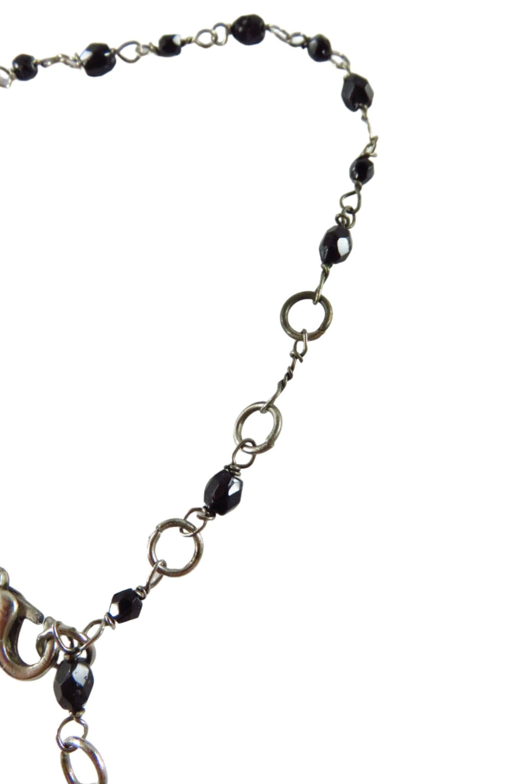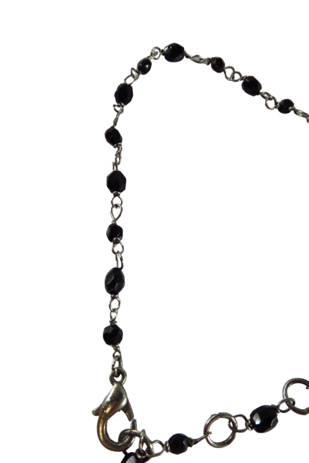 Beaded Dangling Cross Bracelet Black Faceted Glass Accents 11" TL