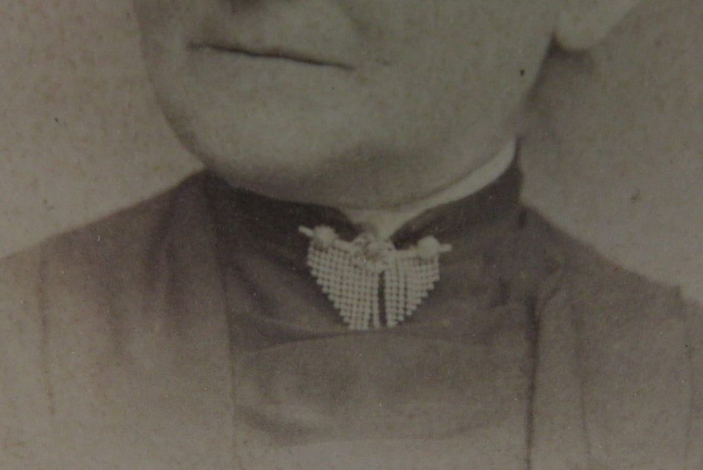 Beaded Seed Pearl Brooch Older Woman Antique Cabinet Card Shadle & Busser York P