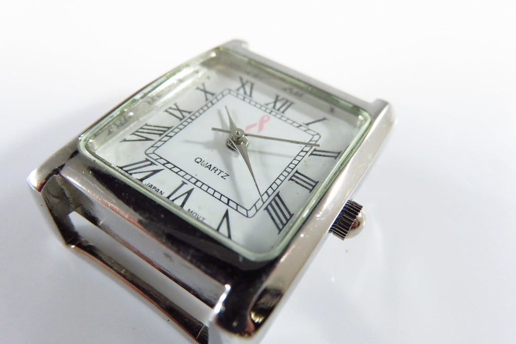 Breast Cancer Awareness White Metal White Dial Quartz Watch No Strap