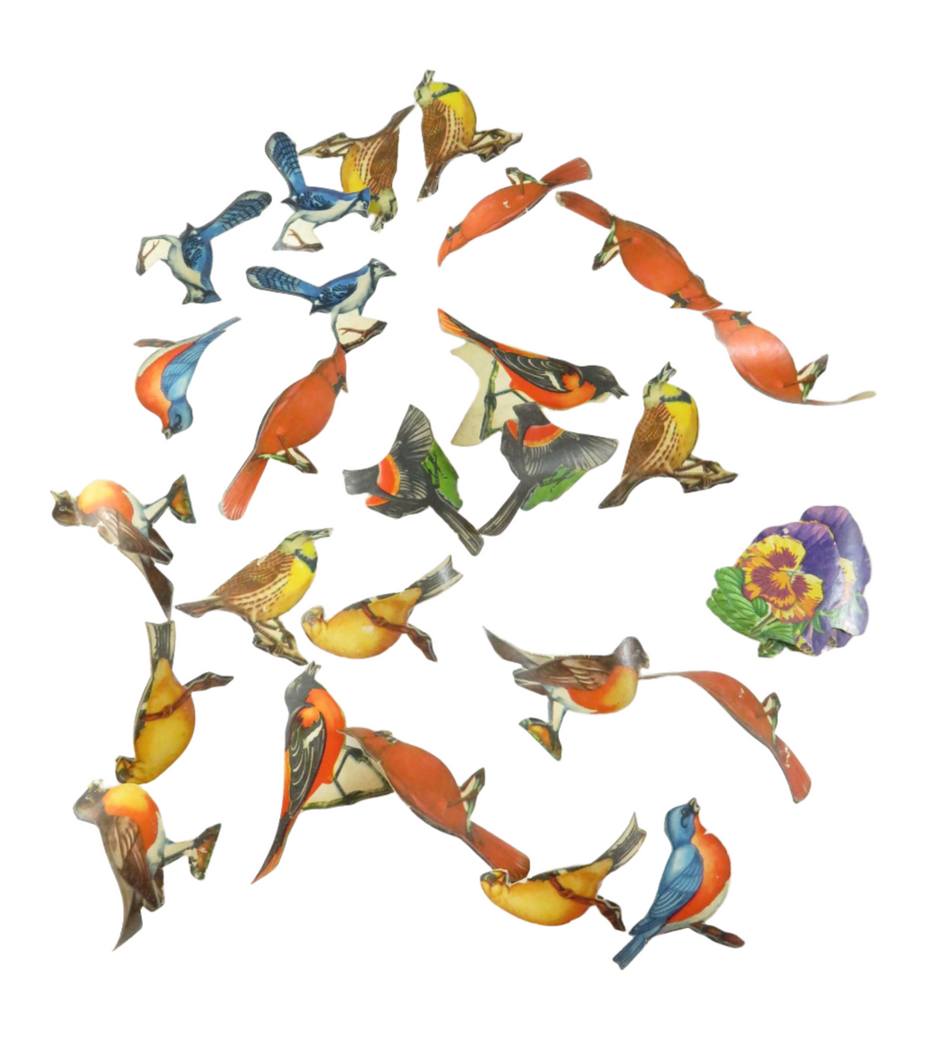 c1940's Assortment of Small Decals Christmas, Birds, Dog, Flowers, Etc