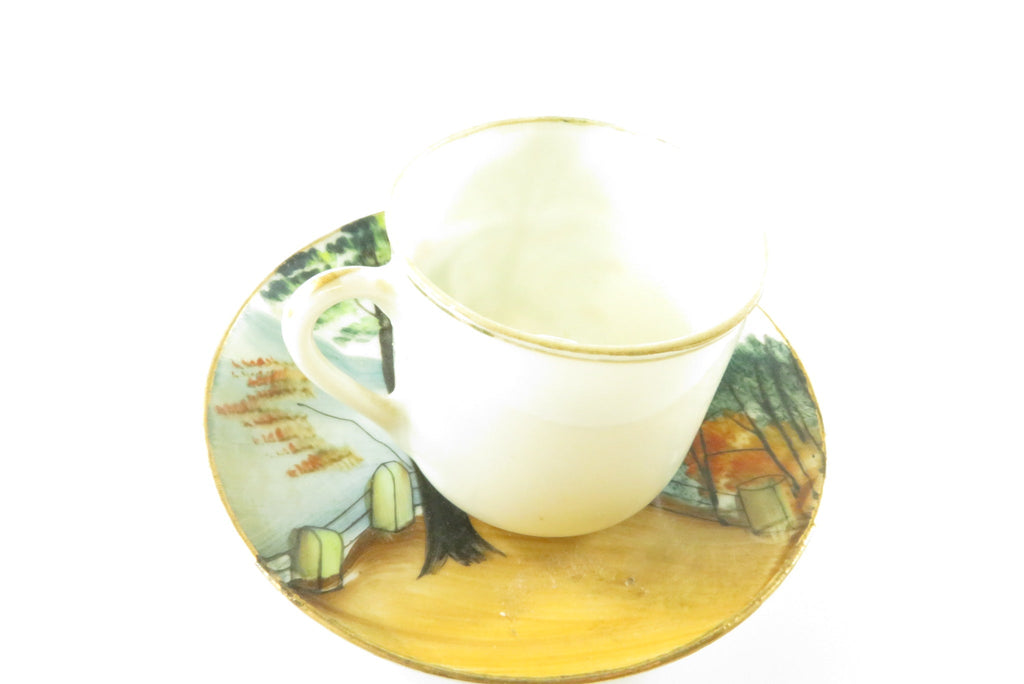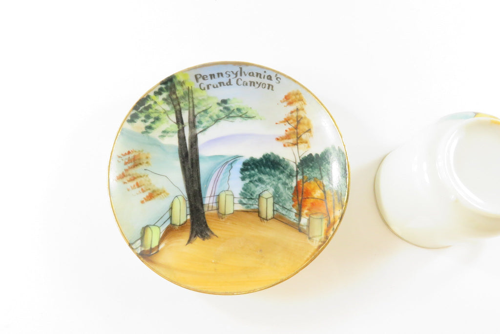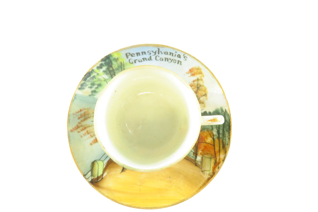 c1950 Rare Pennsylvania's Grand Canyon Tea & Saucer Hand Painted Travel Souvenir