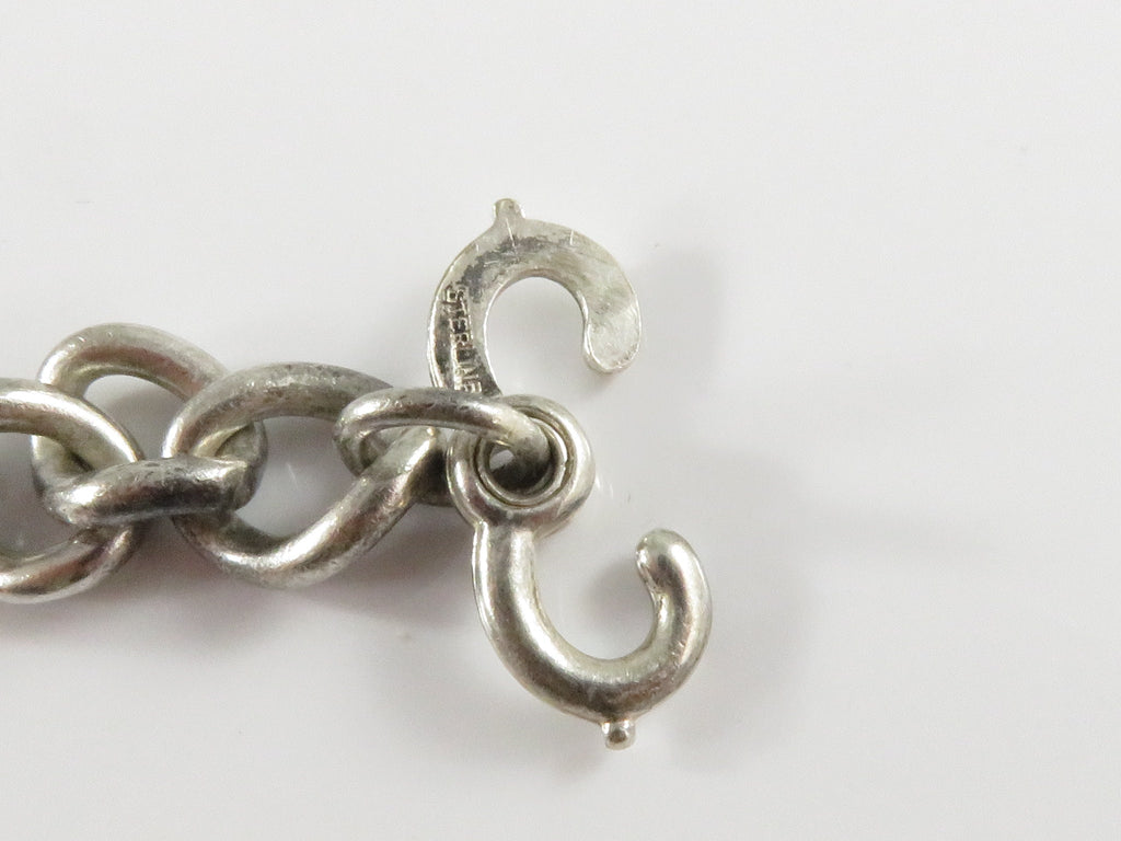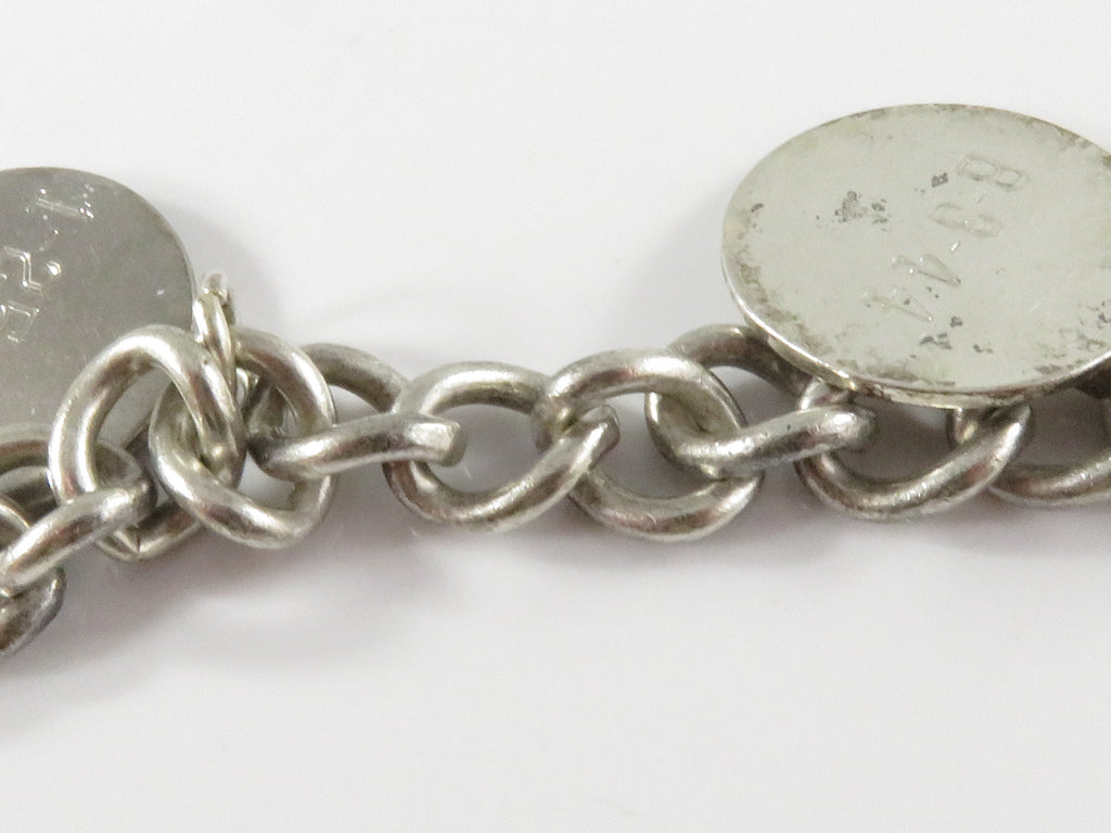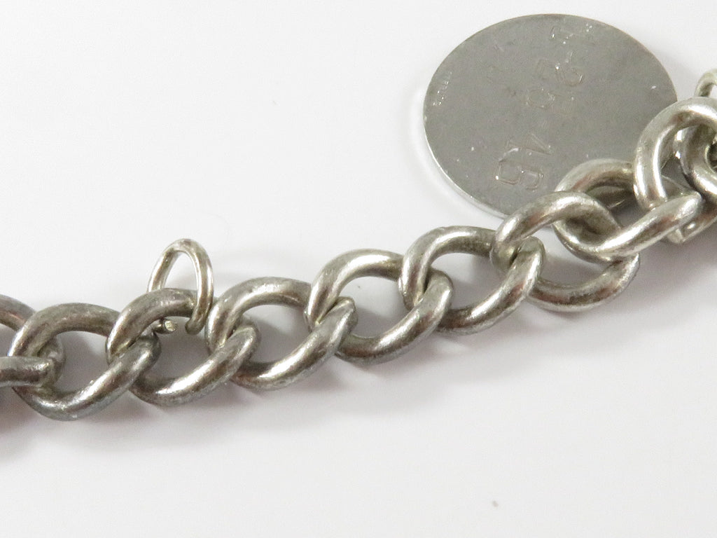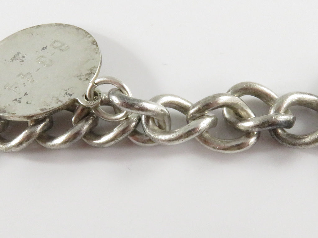 c1950’s Unisex Sterling Heavy Curb Link 7" Charm Bracelet 30.8 Grams