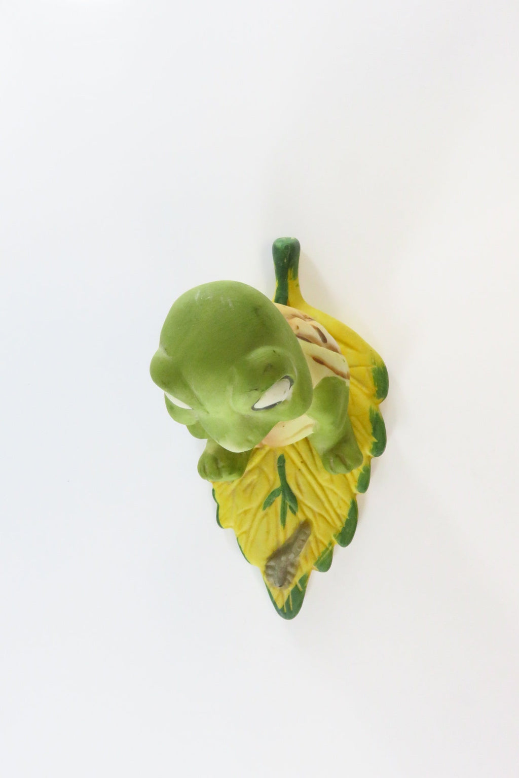 Ceramic Turtle on Leaf Figurine Hand Painted Taiwan Homco