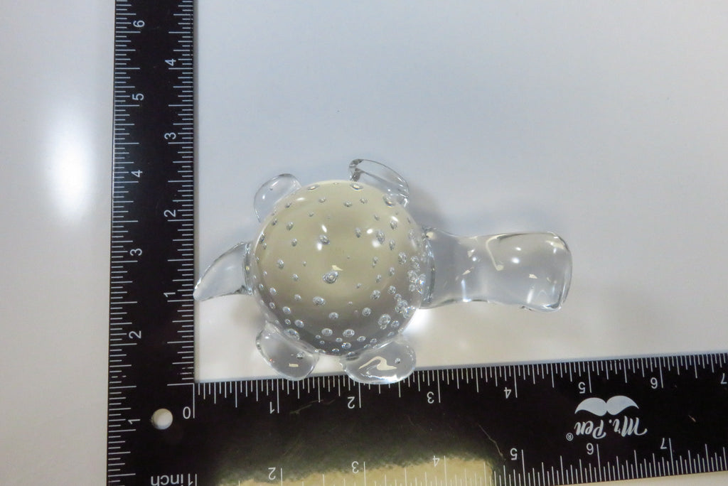 Crystal Clear Bubble Glass Turtle Paperweight Long Neck 4 1/2"