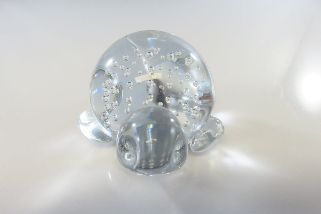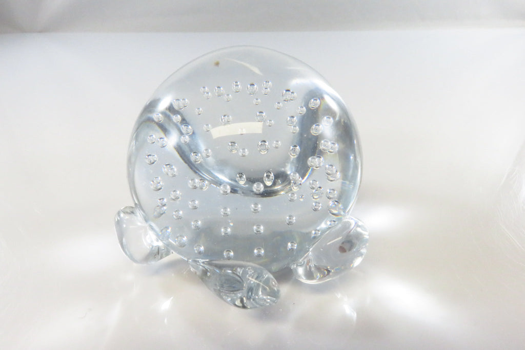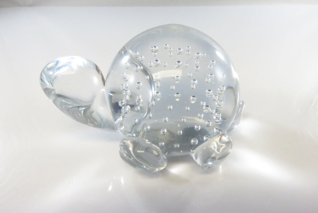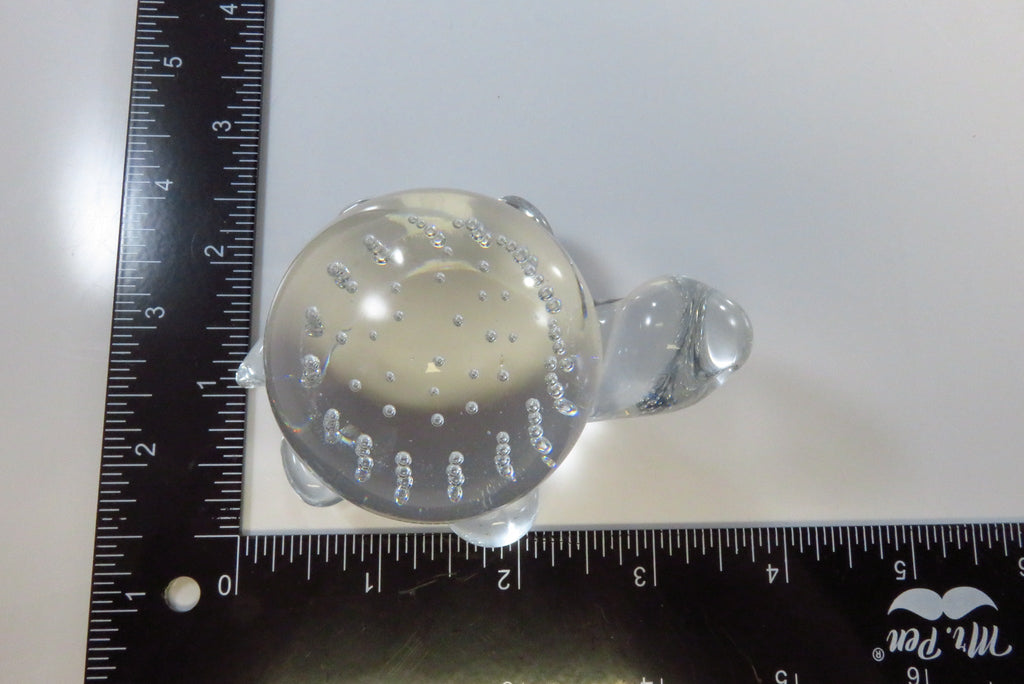 Crystal Clear Bubble Glass Turtle Paperweight Short Neck 3 1/4"