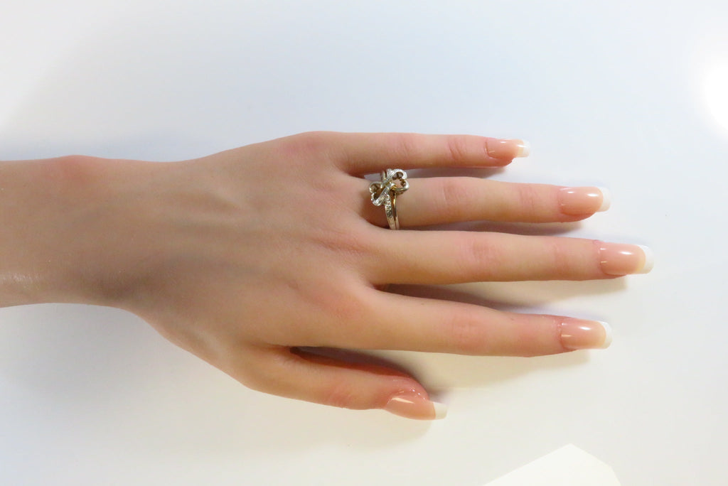 Double Heart Infinity Loop Costume Ring By JCM White Metal Size 7 3/4
