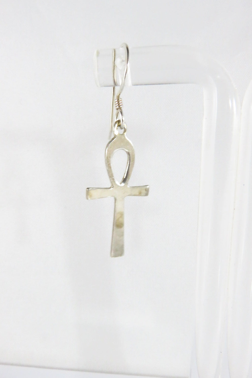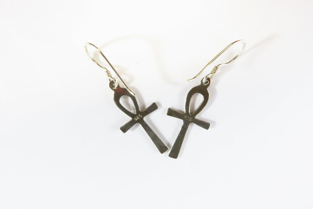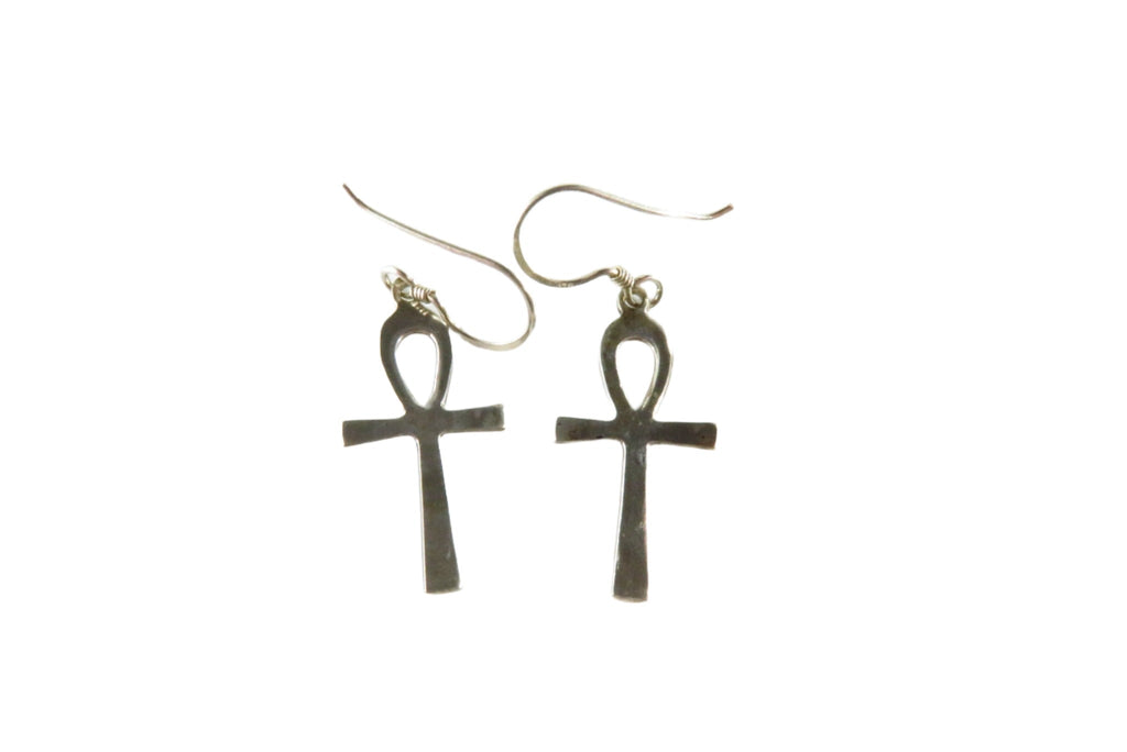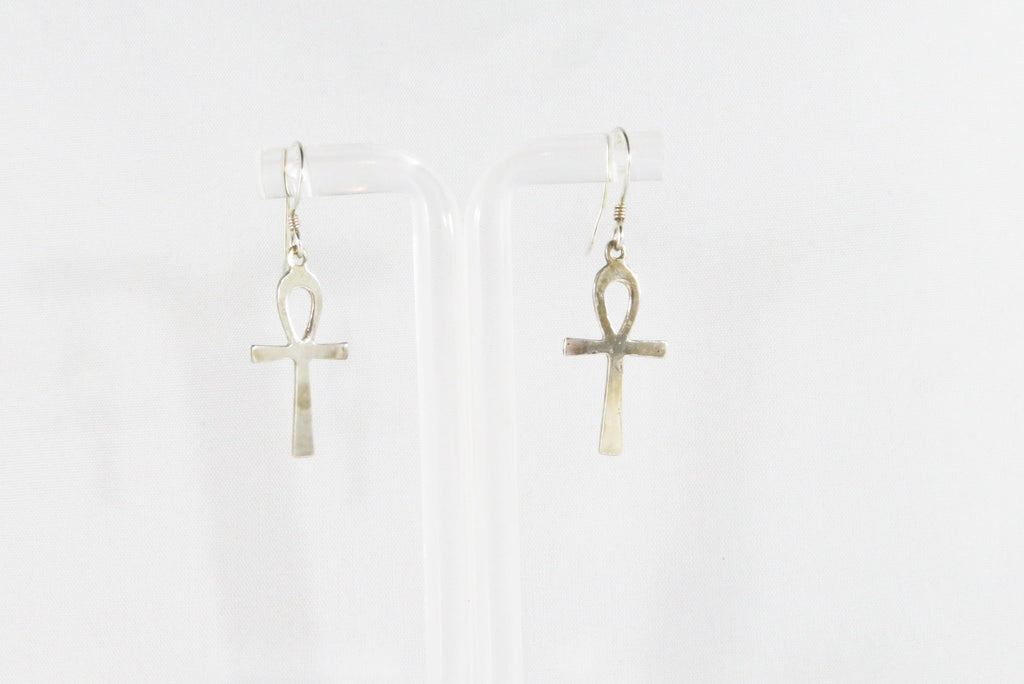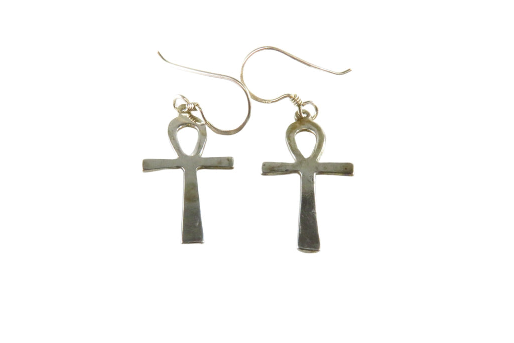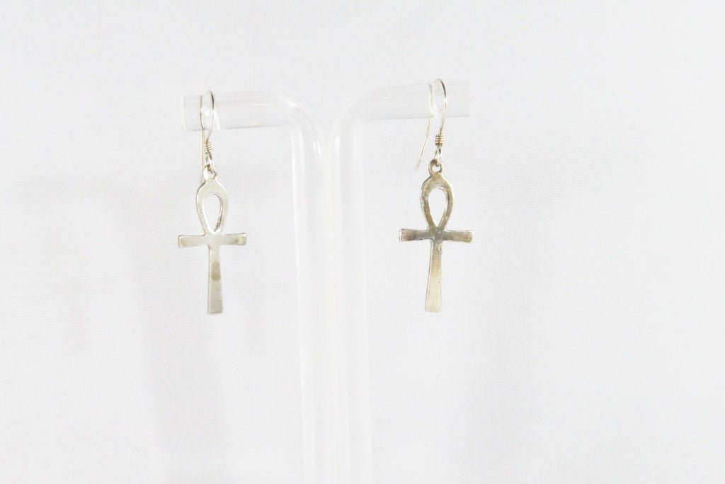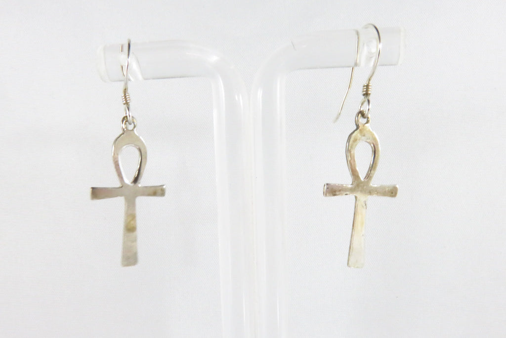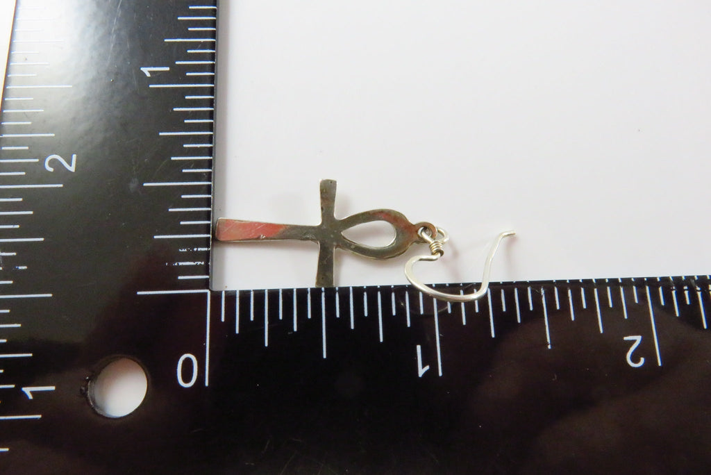 Egyptian Ankh Cross Dangle Earrings Sterling Silver Ankh Earrings 1 1/2" Drop