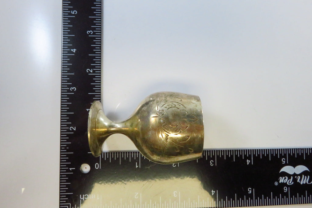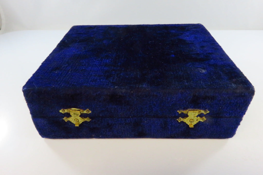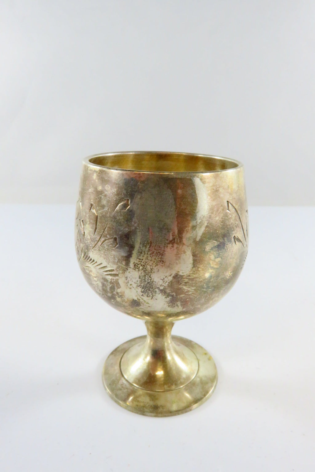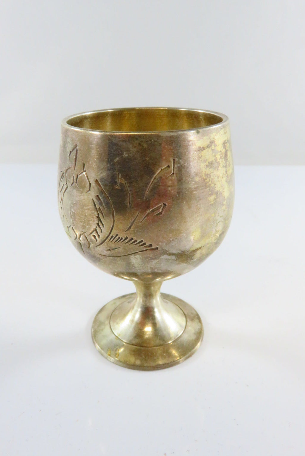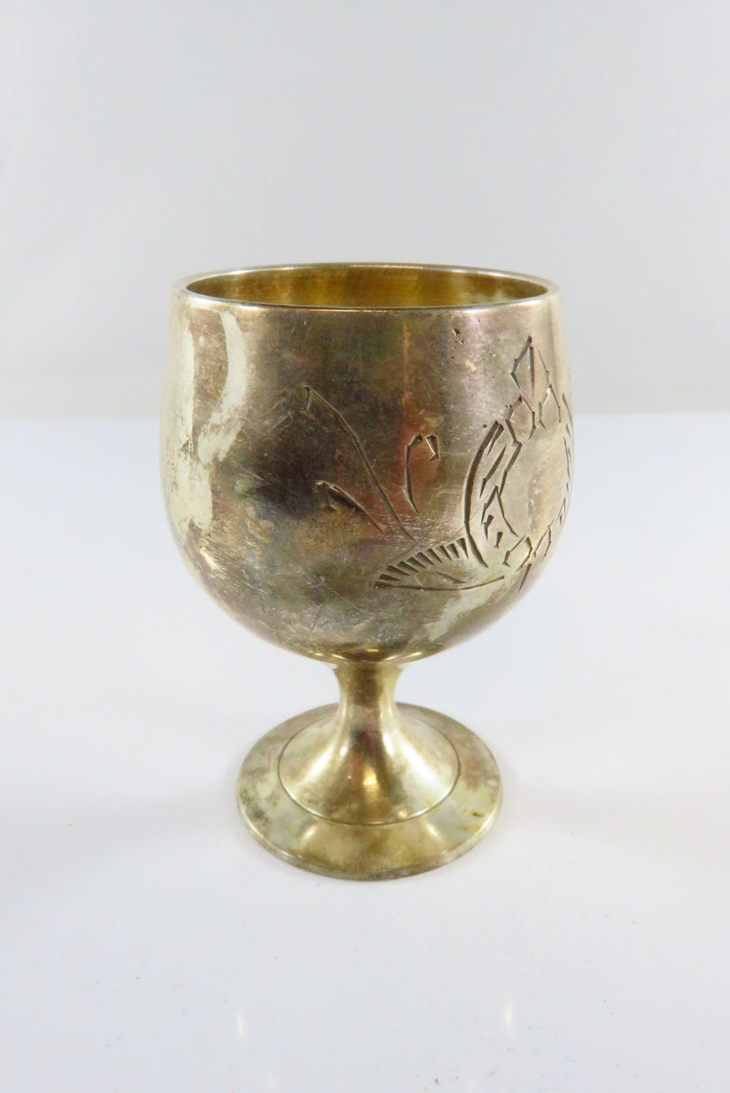 Etched Wine Cup Brandy Cordial Goblet Blue Cased Set of 6 - 1960s Silver-plated