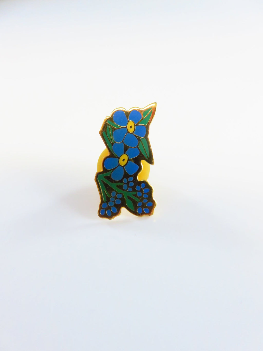 Forget Me Not Enamel Pinback Gold Gilt lapel Pin Hat Pinback