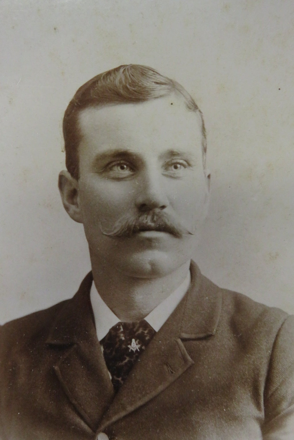 Freemason Man Wear Pin Tie Suite Antique Cabinet Card Philbrick Biddeford Maine