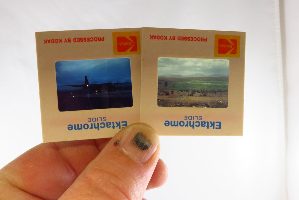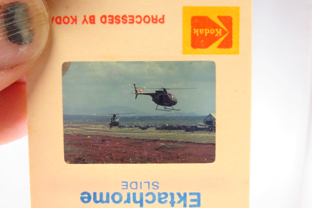 Generous Grouping of Photo Slides Circa 1980 Planes, People, Boat, Helicopter