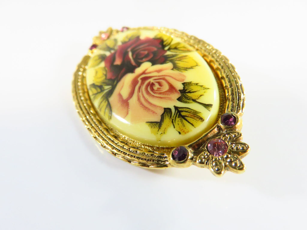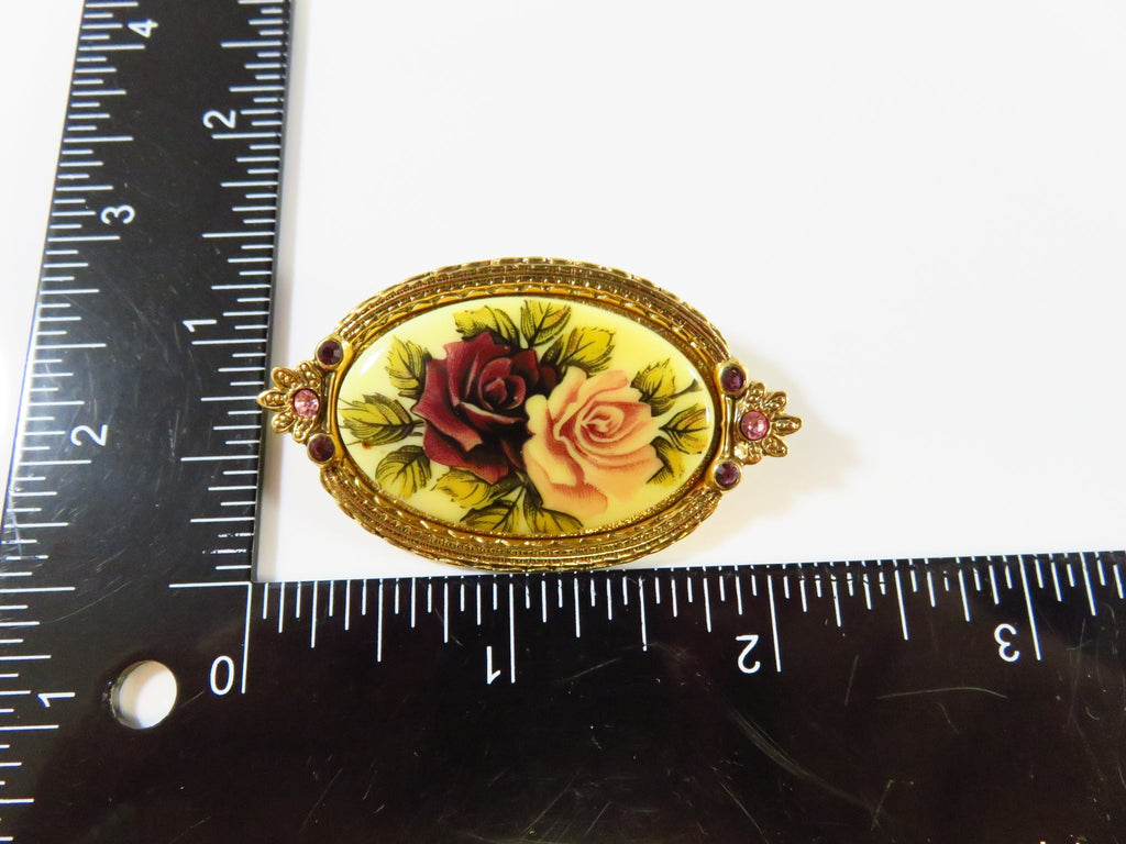 Gold Gilt Flower Brooch with Faux Stones 2 1/8" Wide