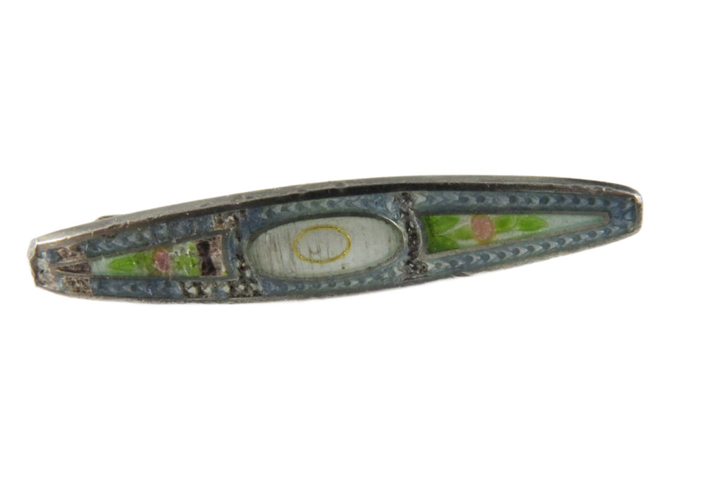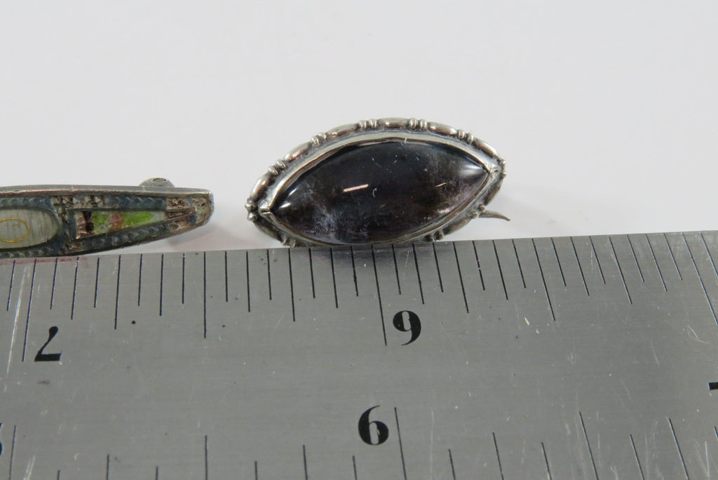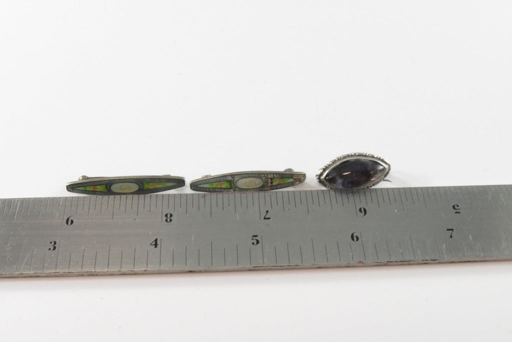 Grouping of 3 Sterling Silver Pins 2 Enamel Beauty Pin 1 Bubble Glass Pin
