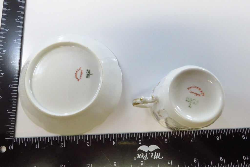 Haviland & Co Limoges France Small Coffee Tea Cup and Saucer With Flowers
