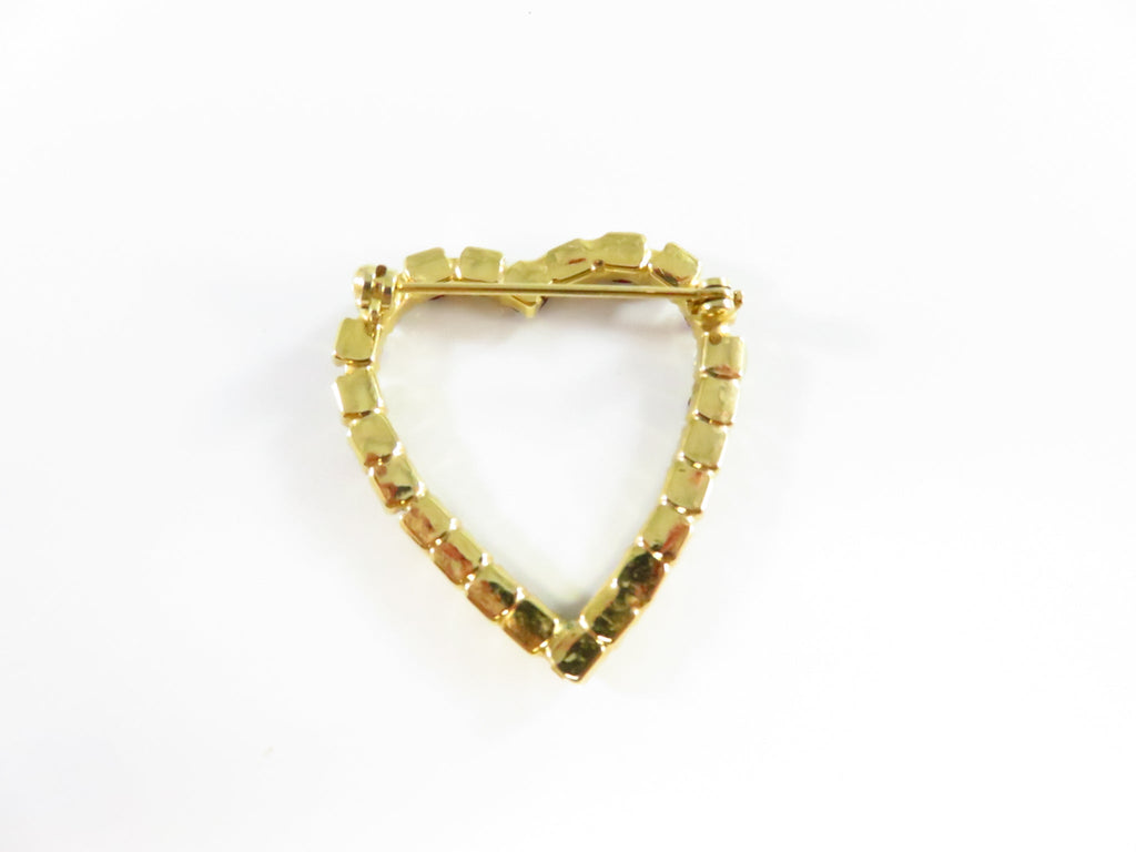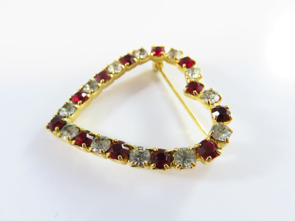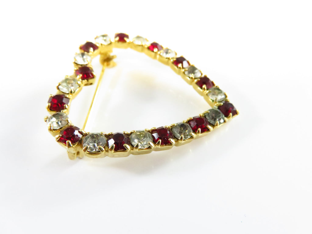 Heart Brooch With Red & White Rhinestone Surround in Gold Tone Setting