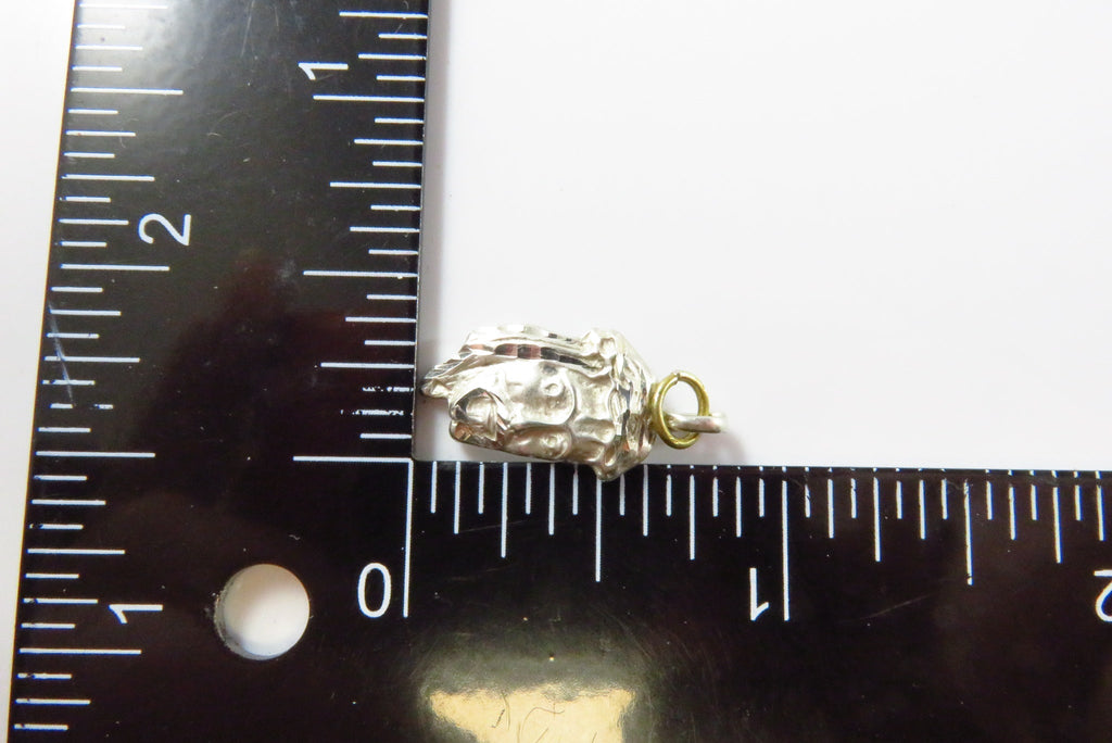 Jesus Head Charm or Pendant in Sterling Silver Polished Acid Washed Accented