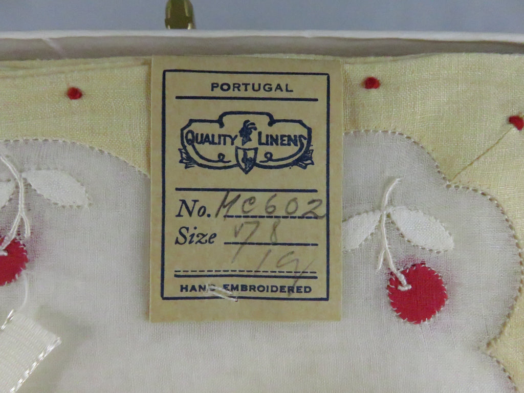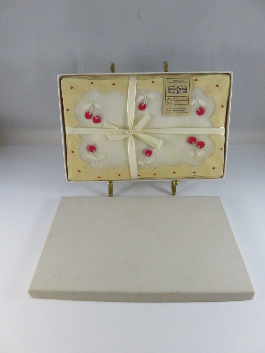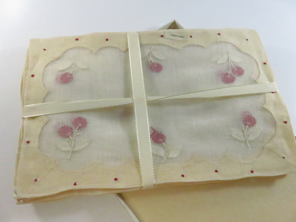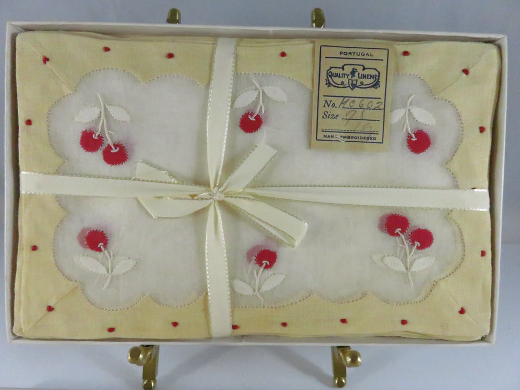 Leacock Madeira Hand Embroidery Sheer Linen Cocktail Napkins – Cherries Motif – Boxed Set of 12 (Portugal)