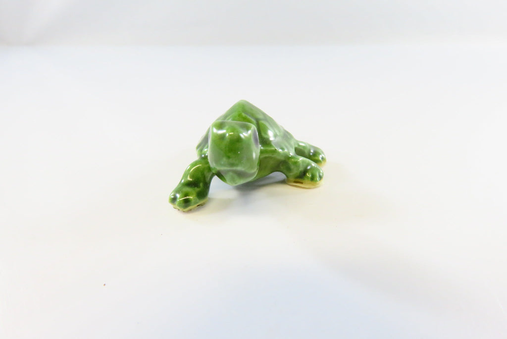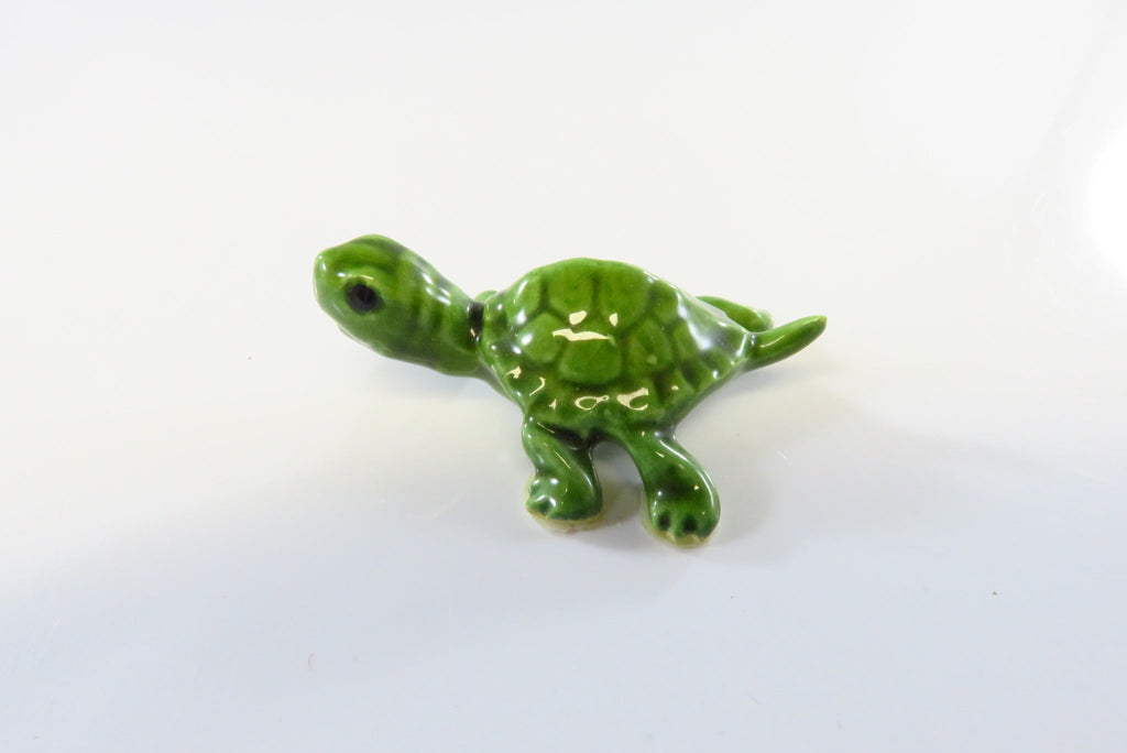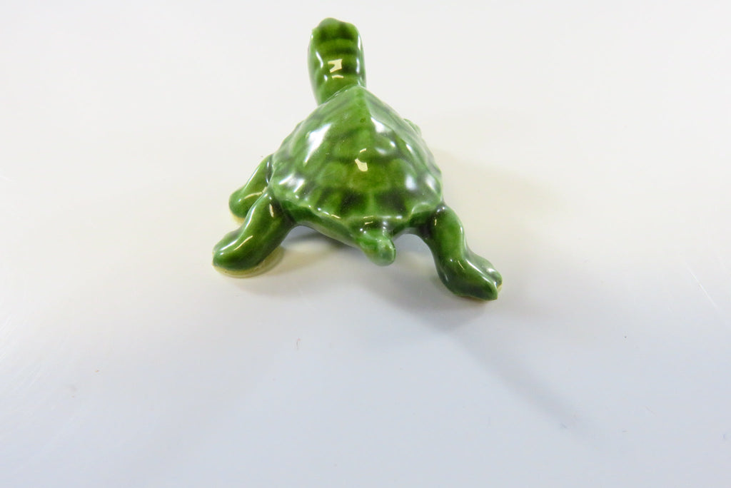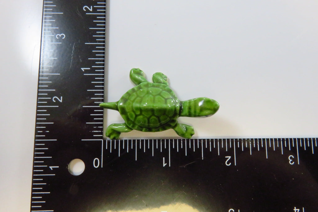 Lovely Miniature Ceramic Glossy Green Turtle with Black Eyes 1 5/8"