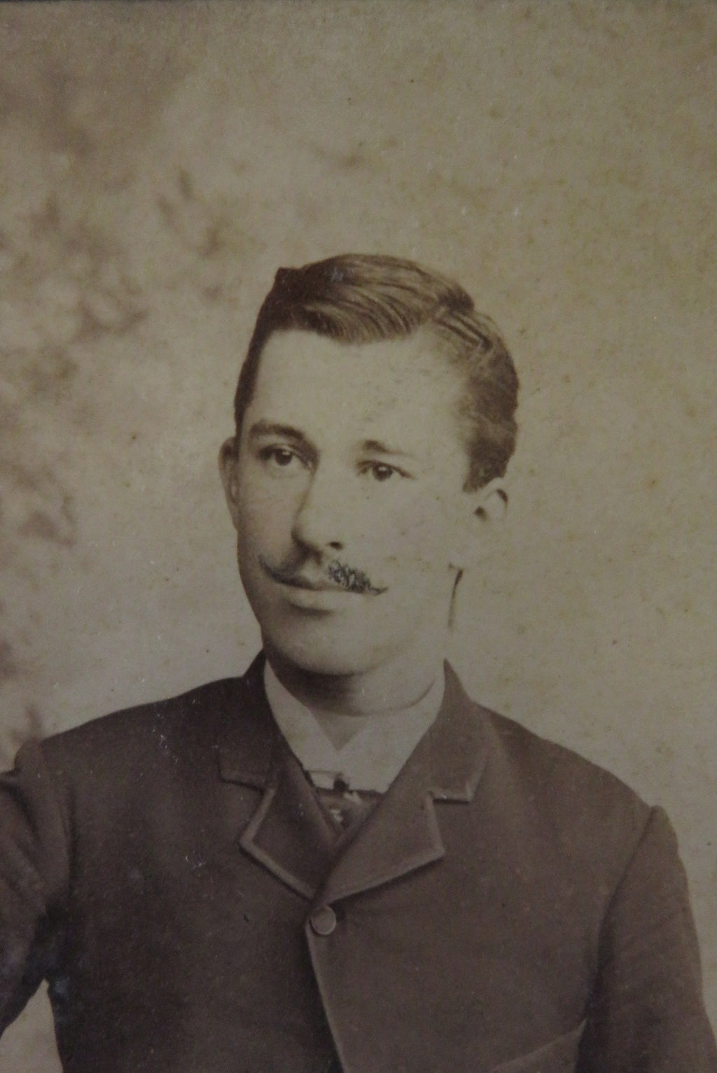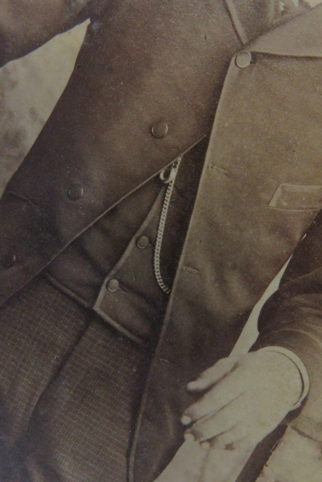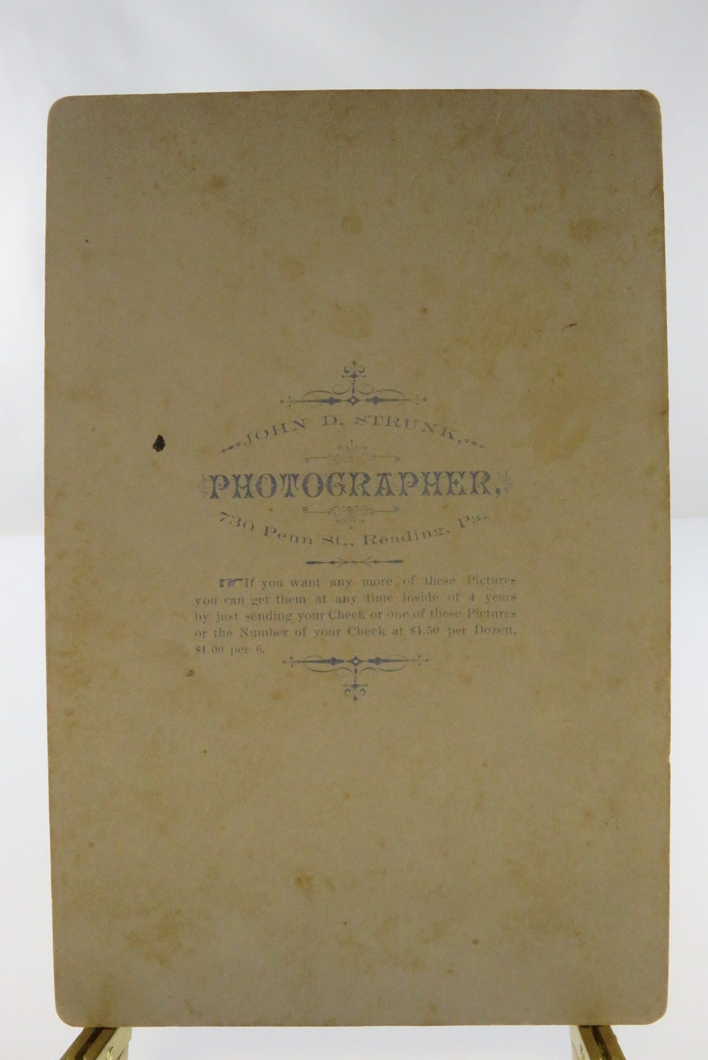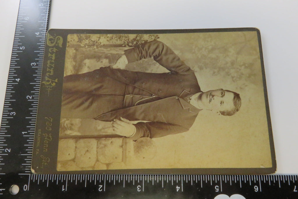 Man Leaning on Faux Stone Wall Antique Cabinet Card Strunk Reading PA