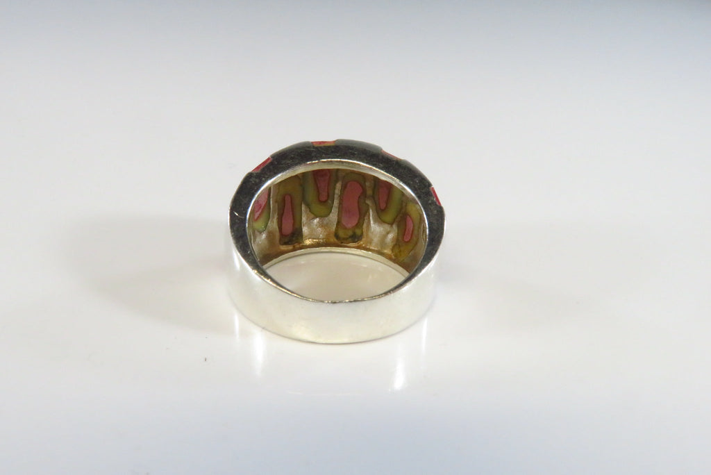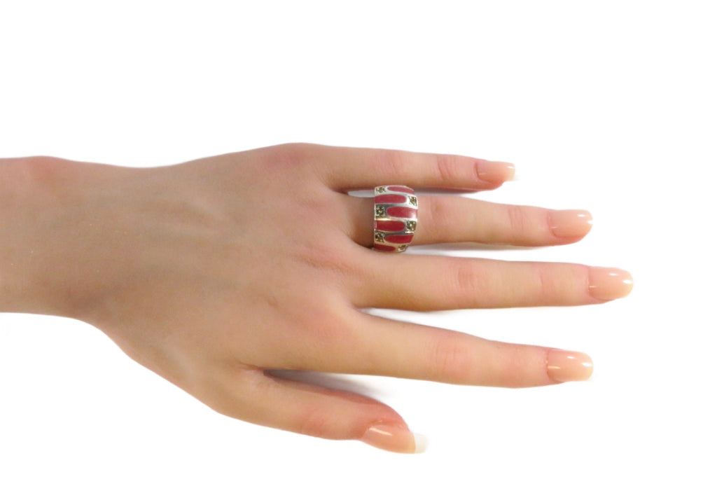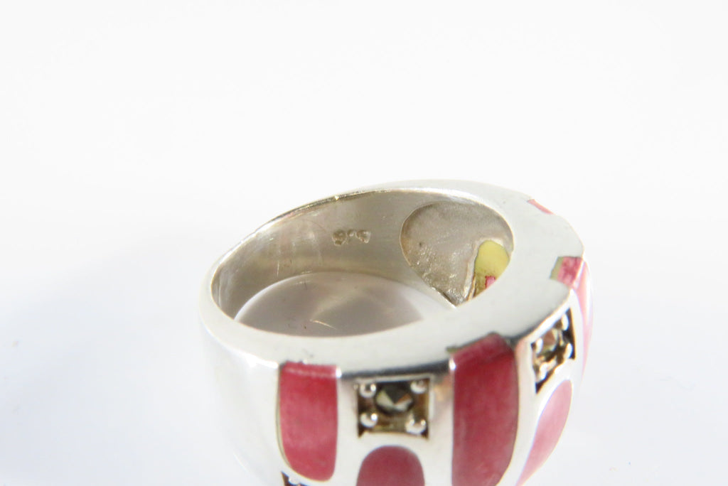Marcasite and Inlaid Dyed Red Resin Sterling Silver Band Ring Size 6.5