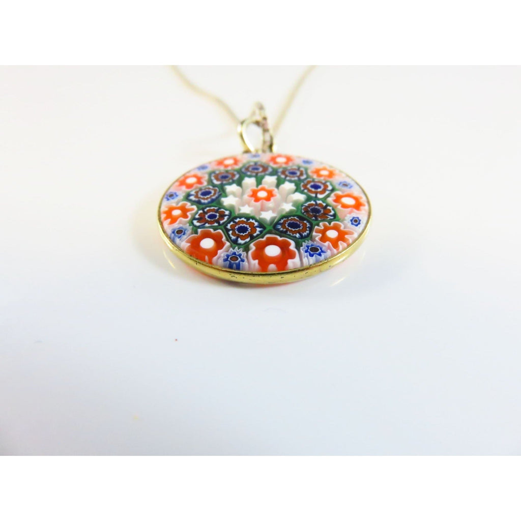 Murano Glass Pendant Necklace With 18.5" Sterling Silver Box Chain & Colorful Floral Design