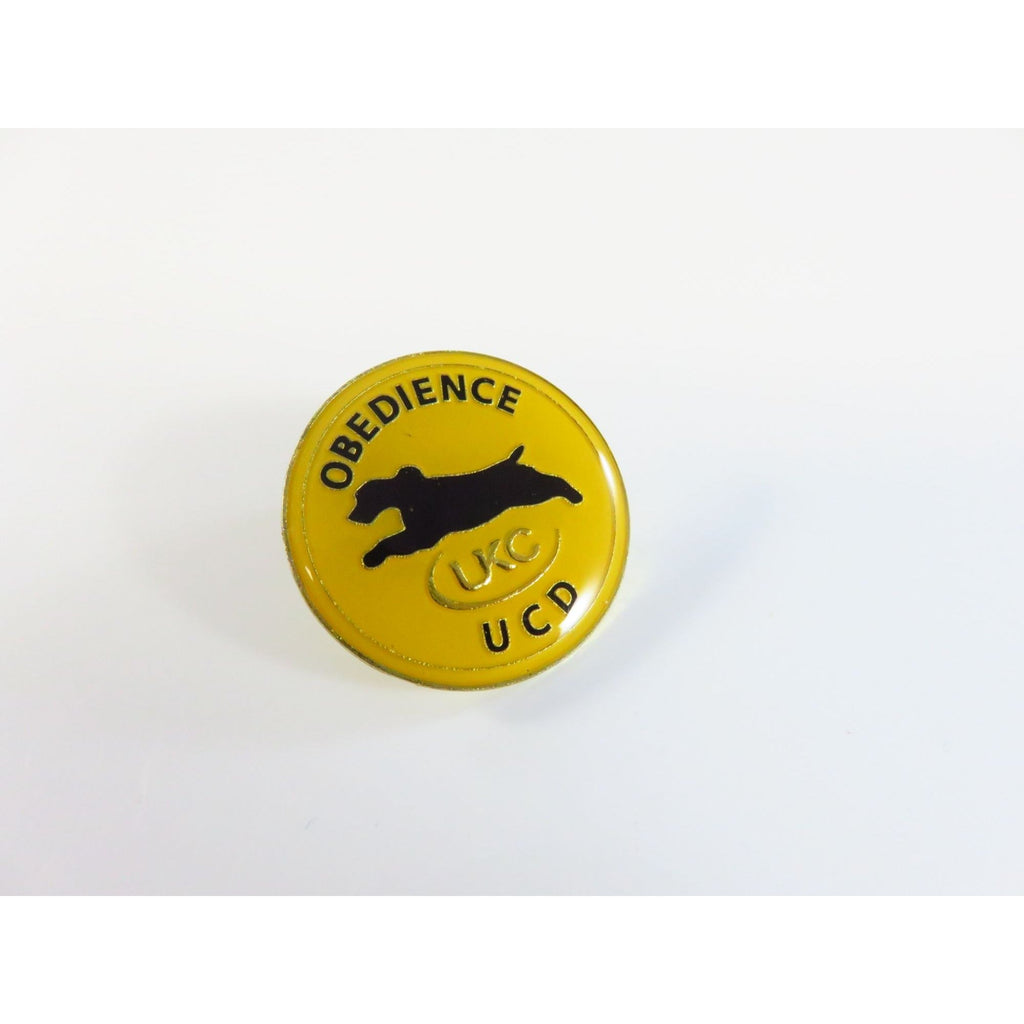 Obedience UCD UKC Award Lapel Hat Pin Yellow & Black Gold Tone 1" Round