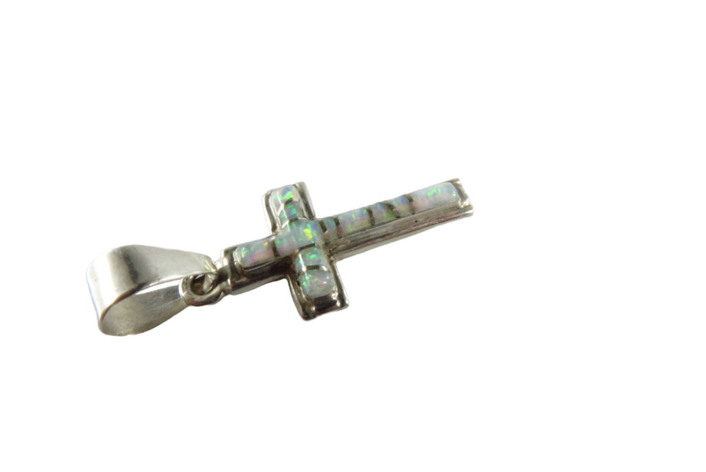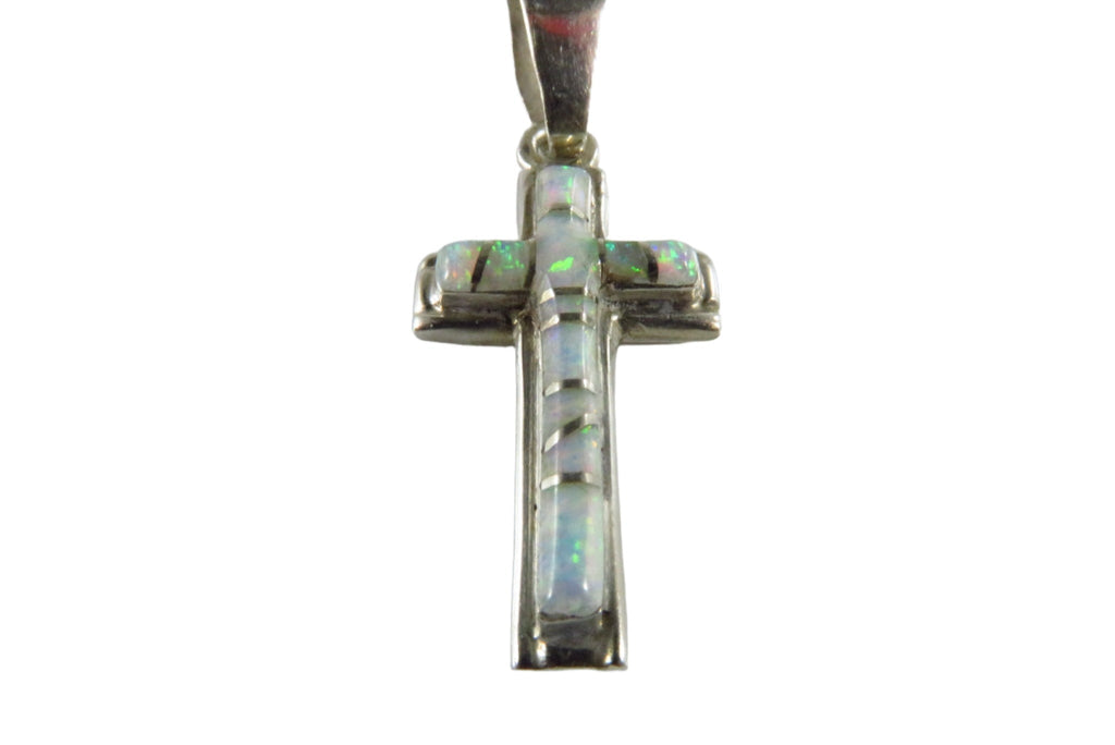 Opal Inlaid Christian Cross Pendant Sterling Opal Cross Cecil Sanders Navajo