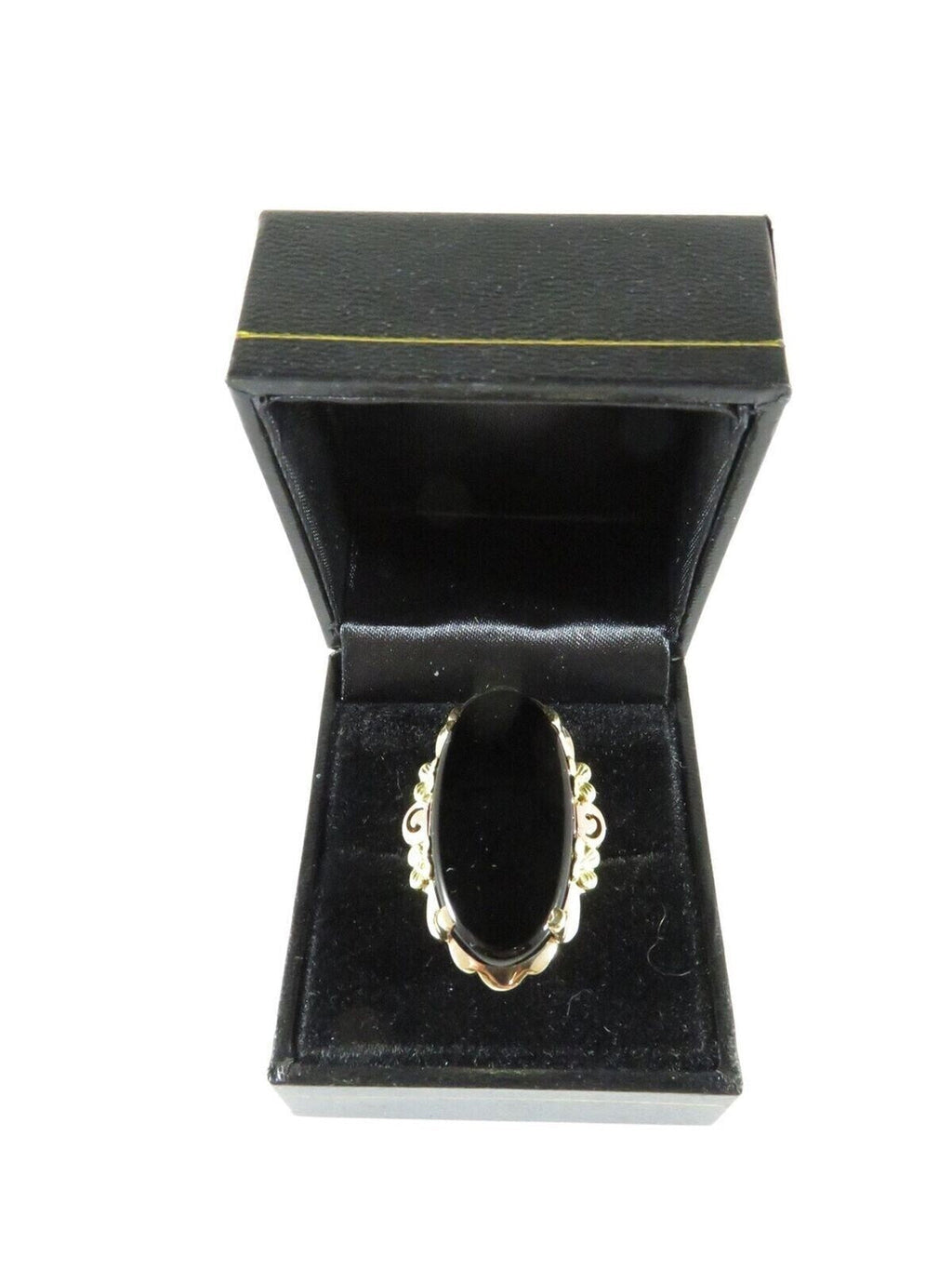 Bold Victorian Style Oval Onyx Rosy Yellow Gold Accented Cocktail Ring Flower Si