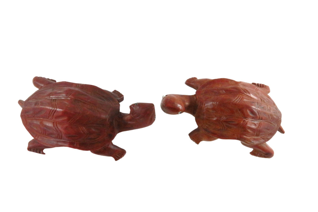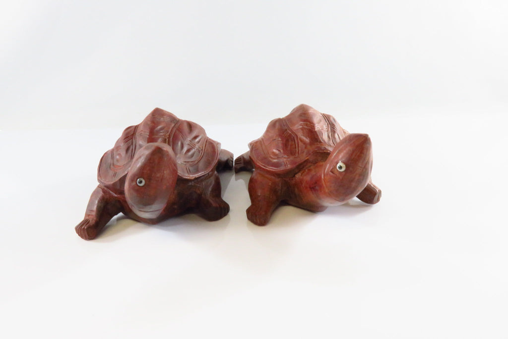 Pair of Asian Style Carved Wood Turtle Figures 4 1/4" Long