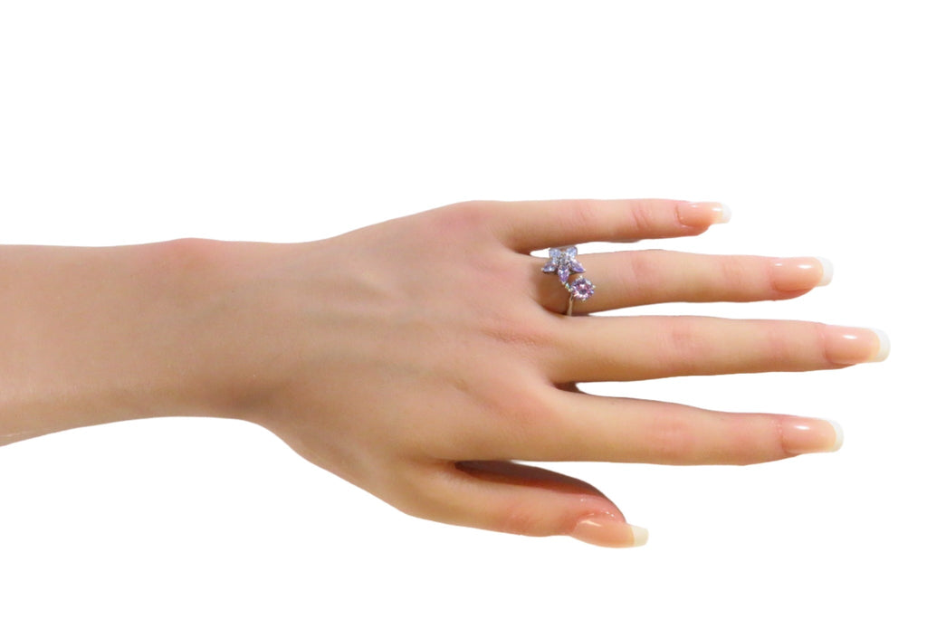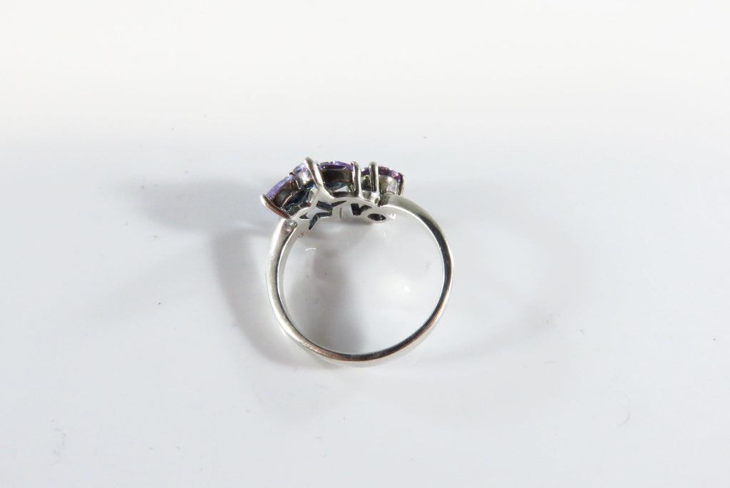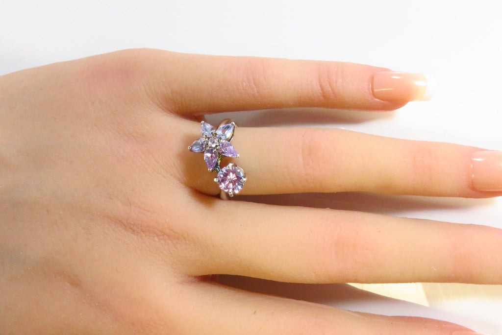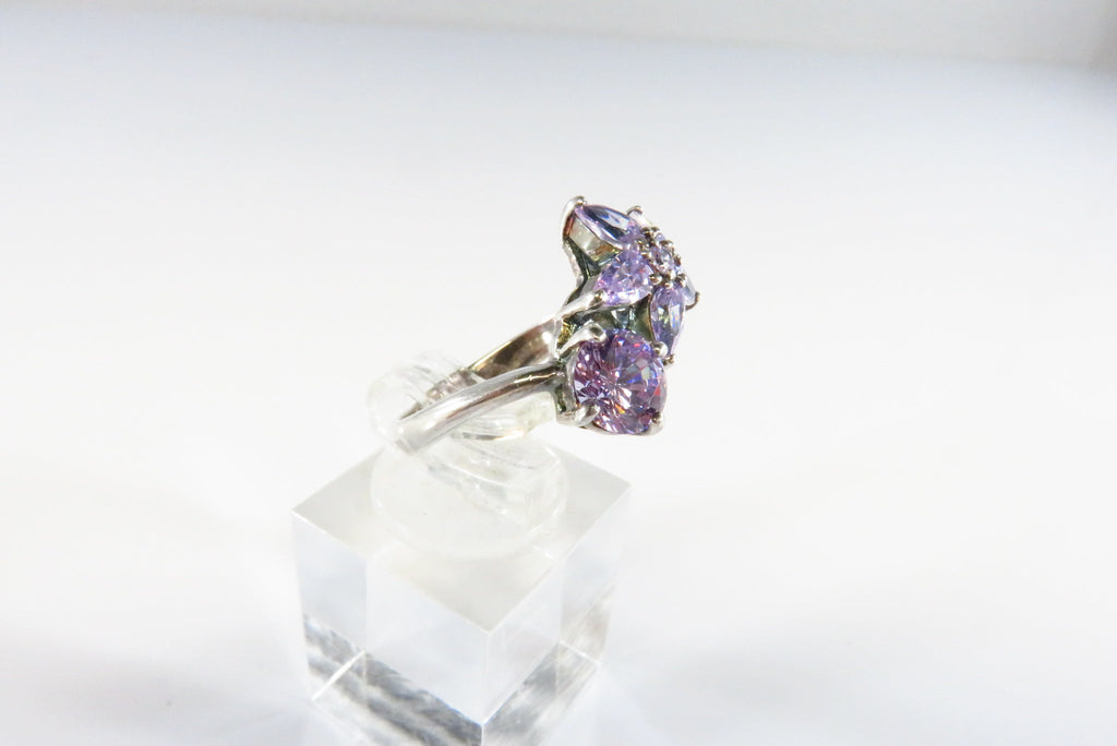 Purple Flower & Sun Sterling & Colored Glass Statement Ring Size 6.75