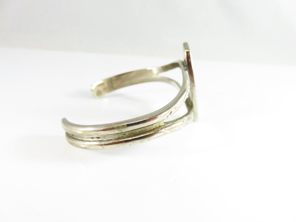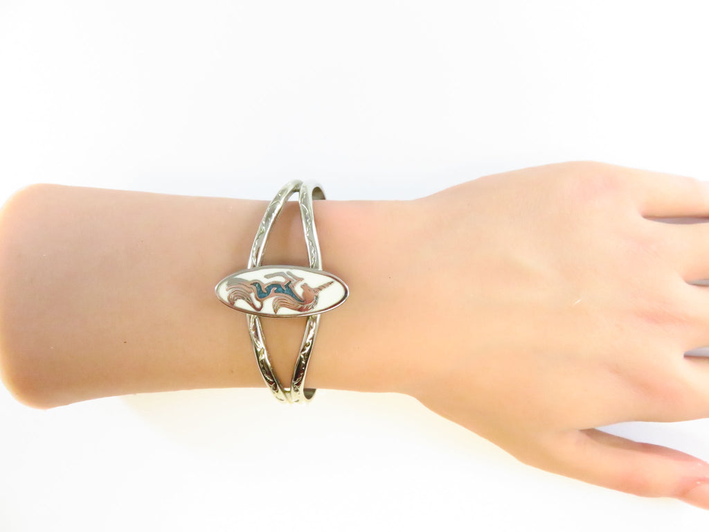 Retro Unicorn Cuff Bracelet White Enamel Crushed Turquoise 6 3/4" Cuff Bracelet