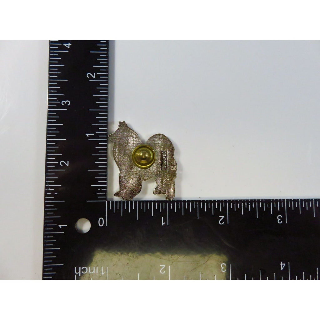 Samoyed Dog Lapel Hat Pin Silver Tone White Enamel Light Wear 1.25 Inch High Base Metal Enamel Imperfections