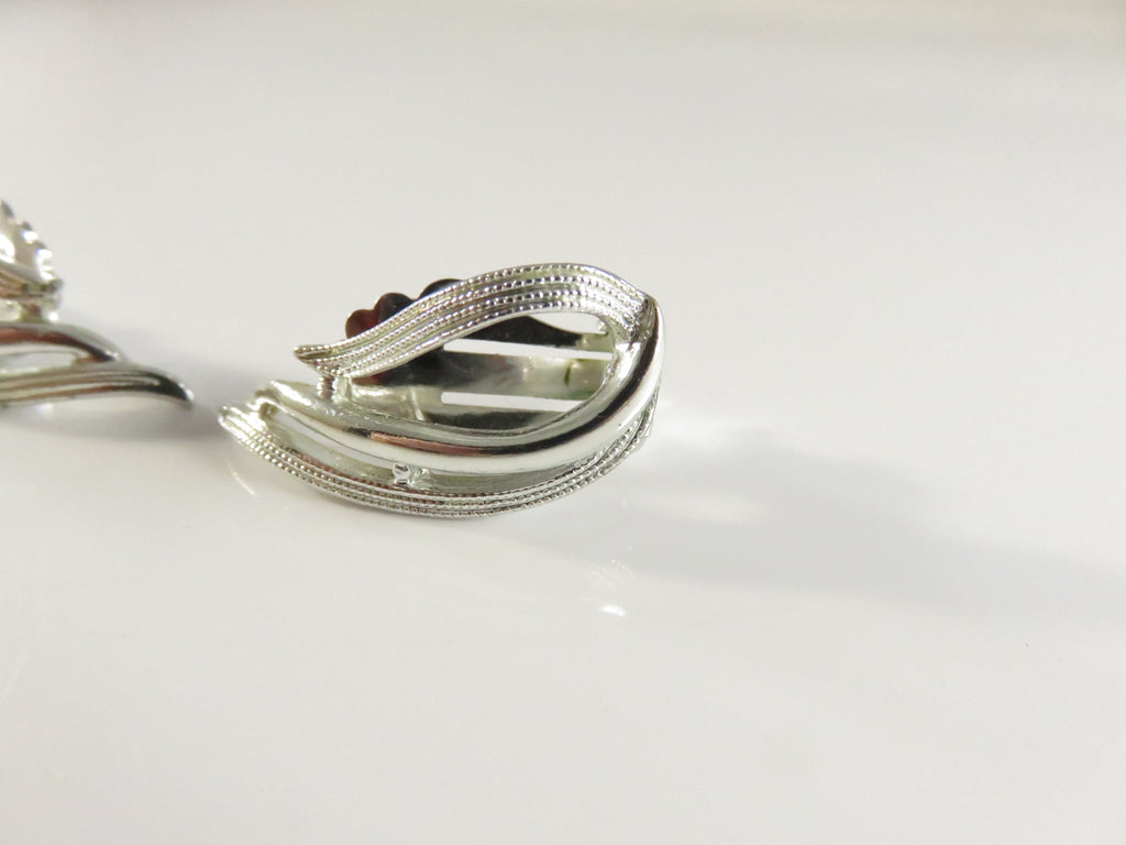 Sarah Coventry Earrings, Sculpted Silver Tone Clip Ons, Vintage